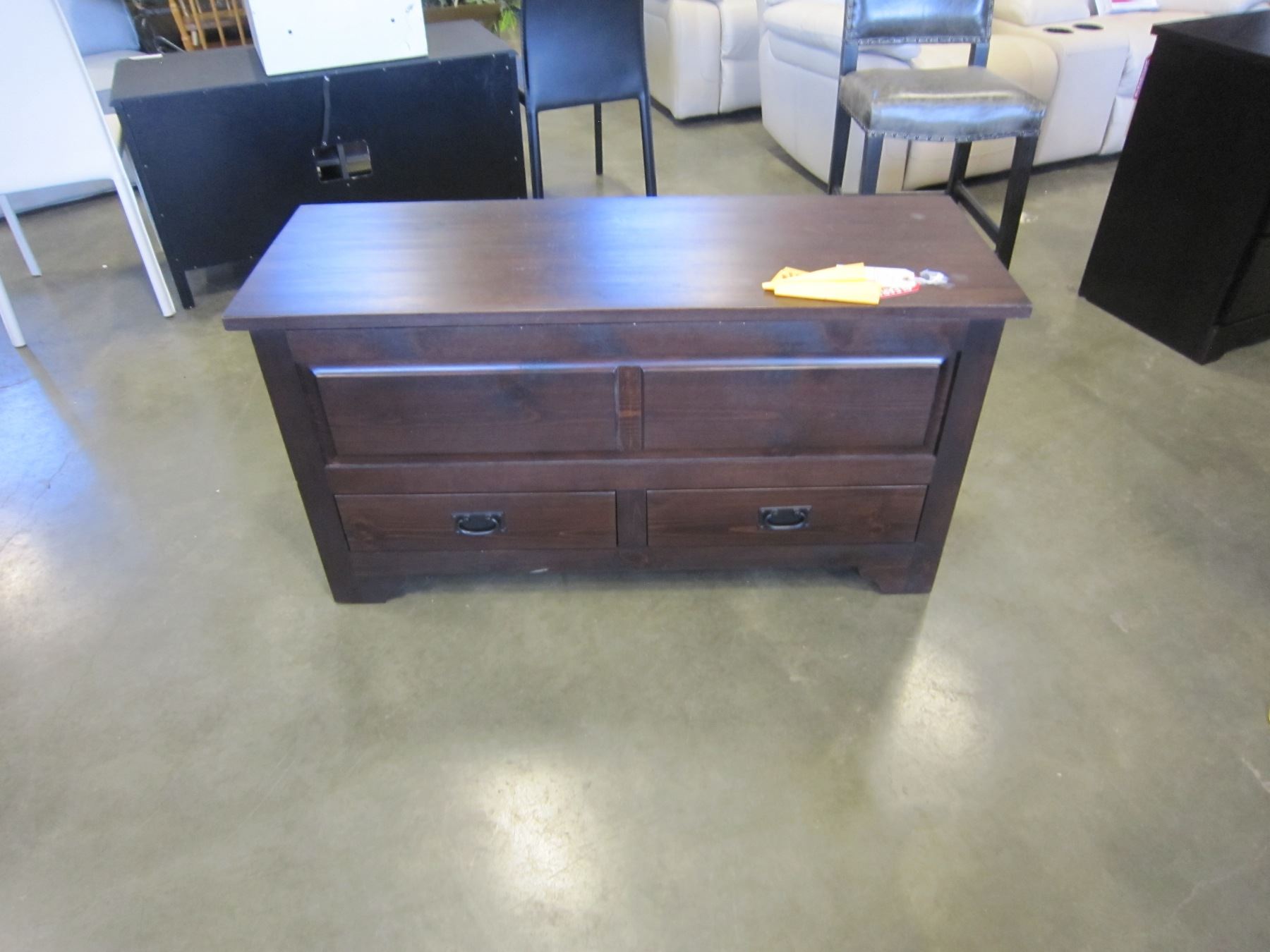 NEW FLOOR MODEL SOLID PINE BLANKET CHEST WITH 2 DRAWERS, BLACK WALNUT STAIN, DOVETAILED DRAWERS, WOOD KNOBS, HAND CRAFTED IN SURREY B.C. 48WX24DX30H WHOLESALE COST IS $425 CURRENT RETAIL IS 639