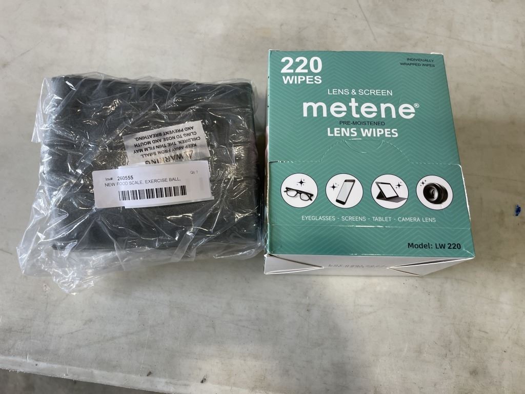 NEW FOOD SCALE, EXERCISE BALL, TUMBLER, WATER BOTTLE AND LENS WIPES