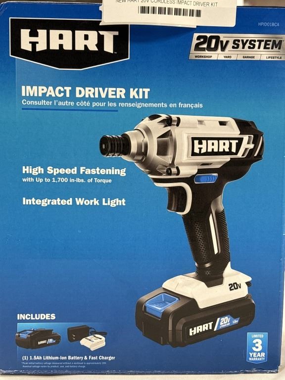 NEW HART 20V CORDLESS IMPACT DRIVER KIT