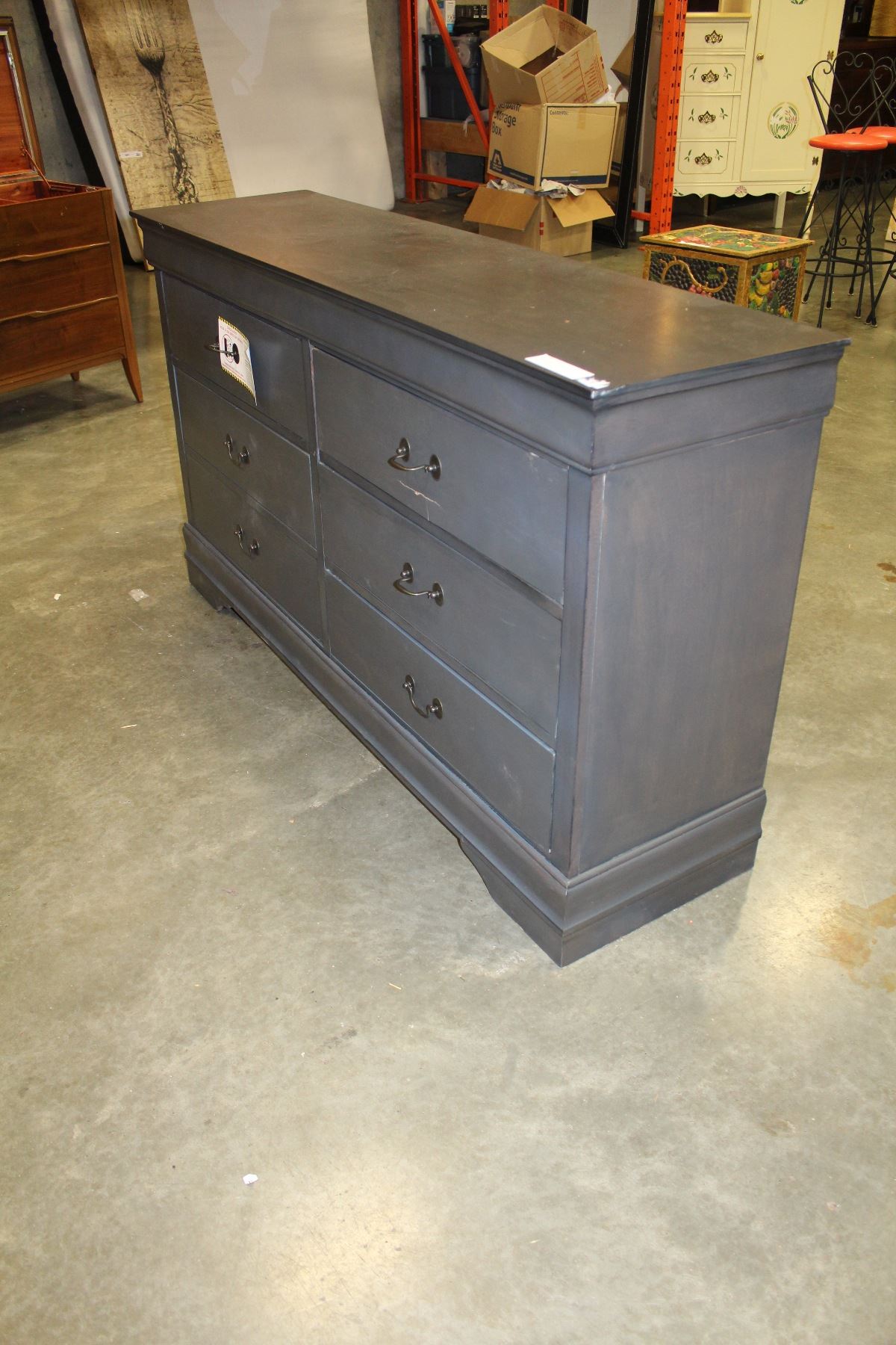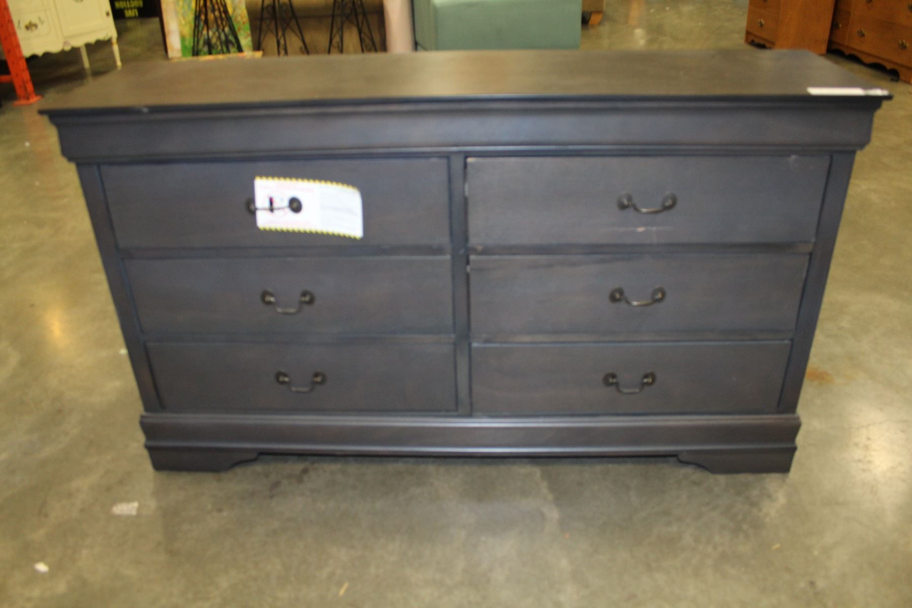 NEW HOME ELEGANCE GREY MODERN 6 DRAWER DRESSER, MINOR SHIPPING DAMAGE TO TOP RIGHT DRAWER, RETAIL $7