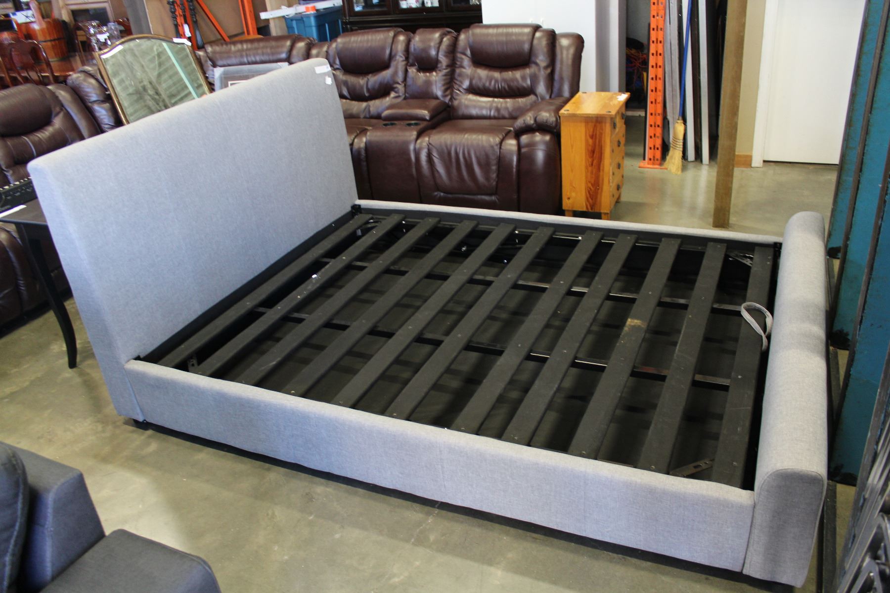 NEW HOME ELEGANCE GREY MODERN PADDED QUEENSIZE PLATFORM LIFT BED FOR UNDER STORAGE, RETAIL $2199
