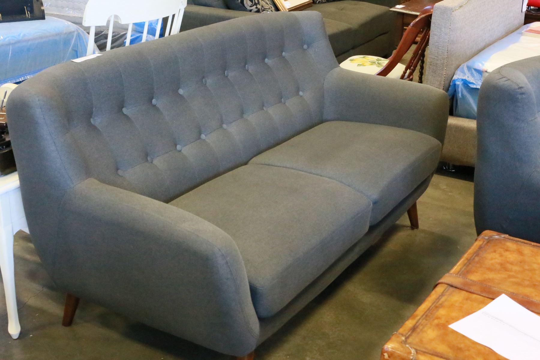 NEW HOME ELEGANCE MODERN CLUB STYLE SOFA AND CHAIR DARK GREY FABRIC RETAIL $1149