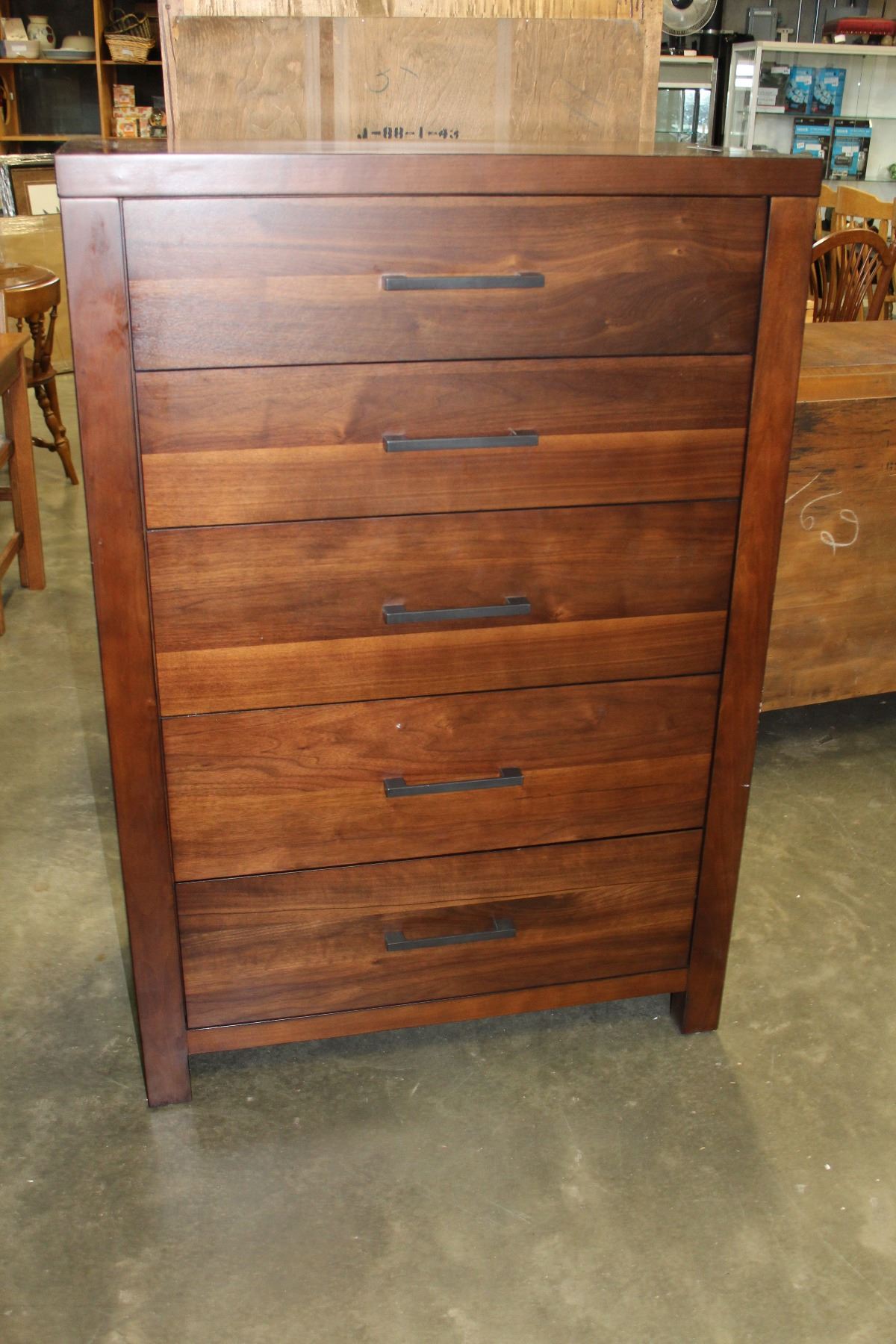 NEW HOME ELEGANCE MODERN DARK WOOD FINISH RUSTIC 5 DRAWER CHEST, SOLID WOOD, DOVETAIL CONSTUCTION, RETAIL $999
