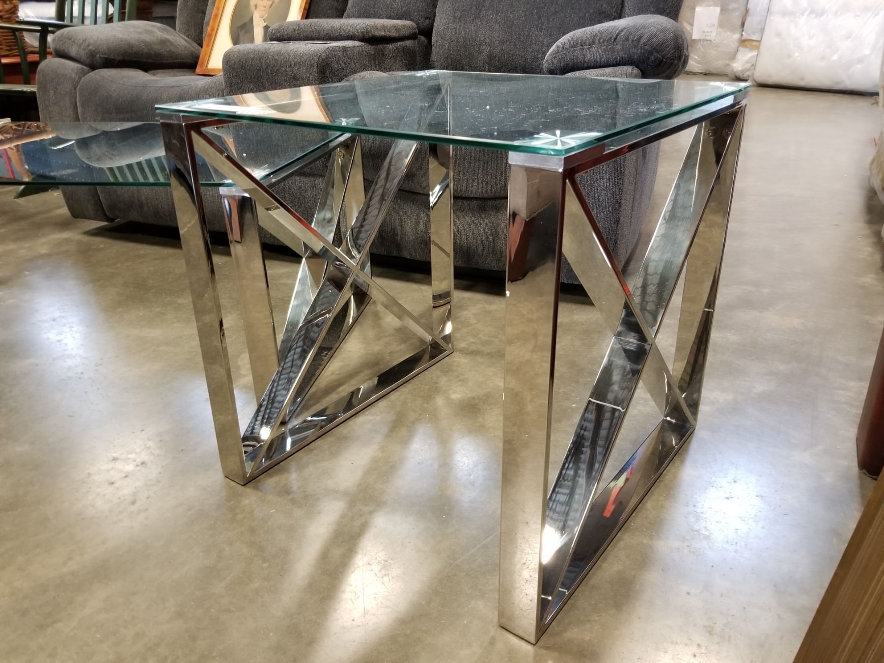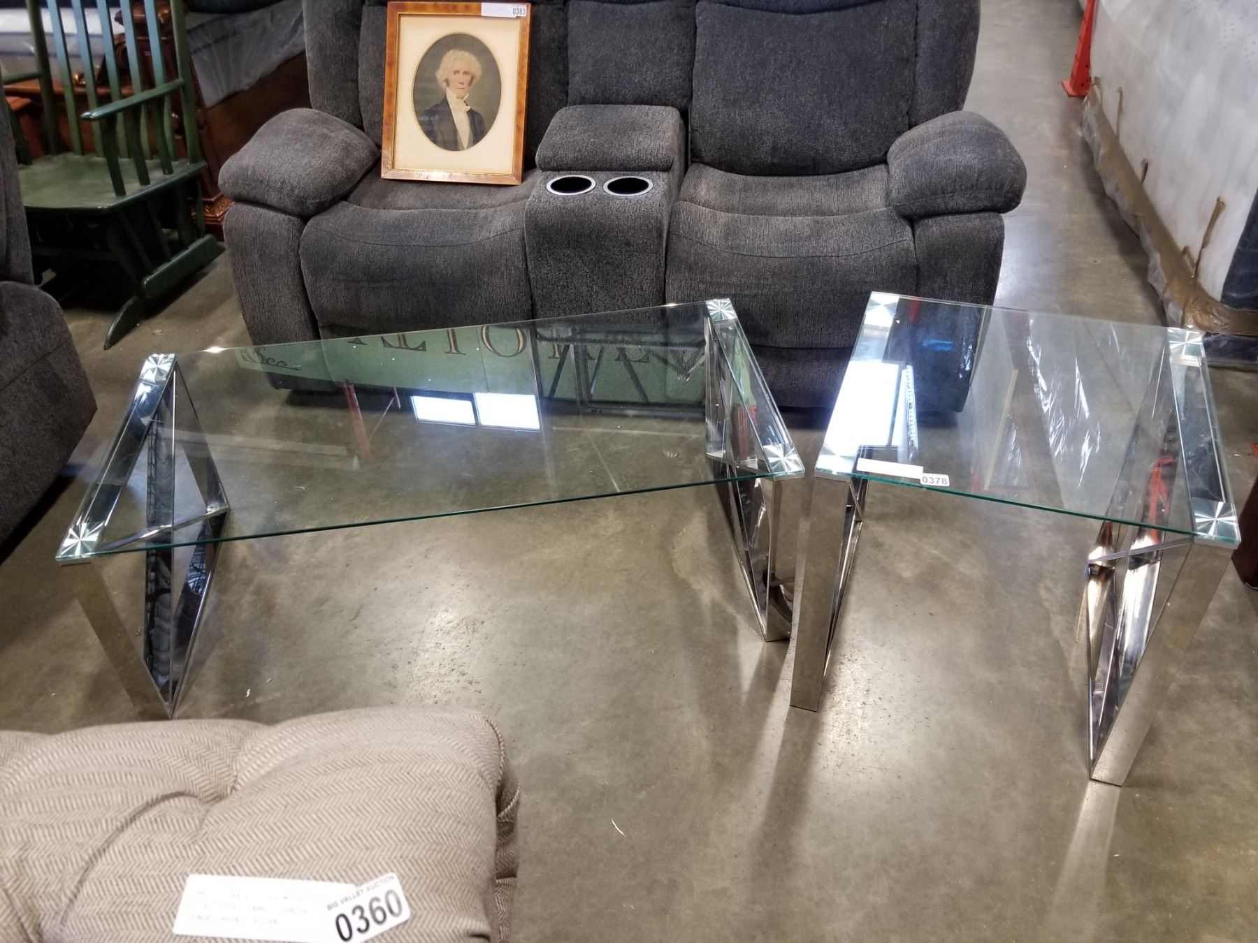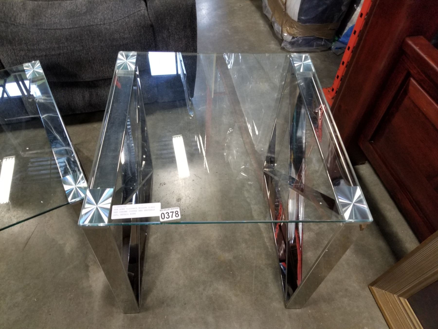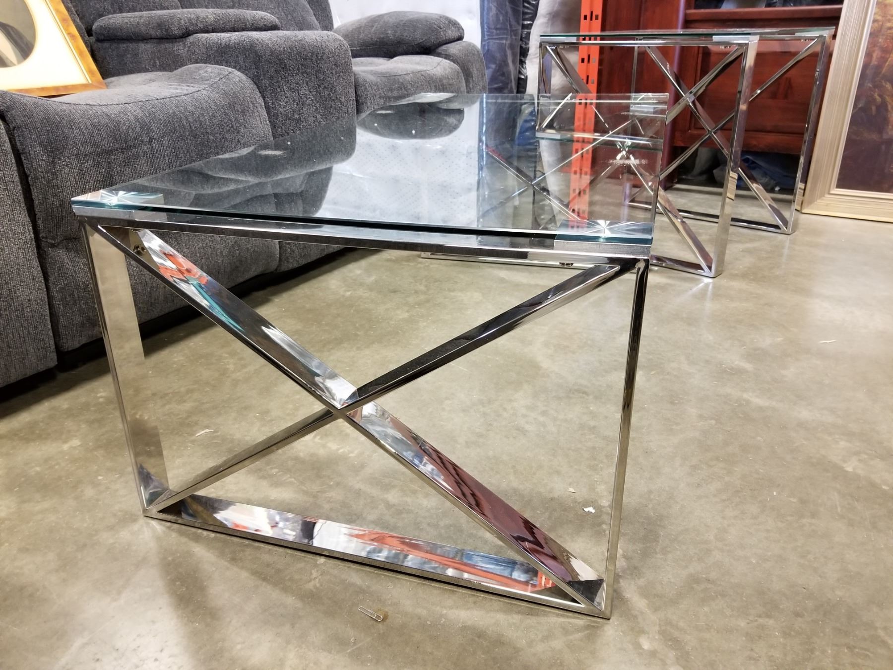 NEW HOME ELEGANCE MODERN GLASS AND CHROME COFFEE AND ENDTABLE SET, RETAIL #399