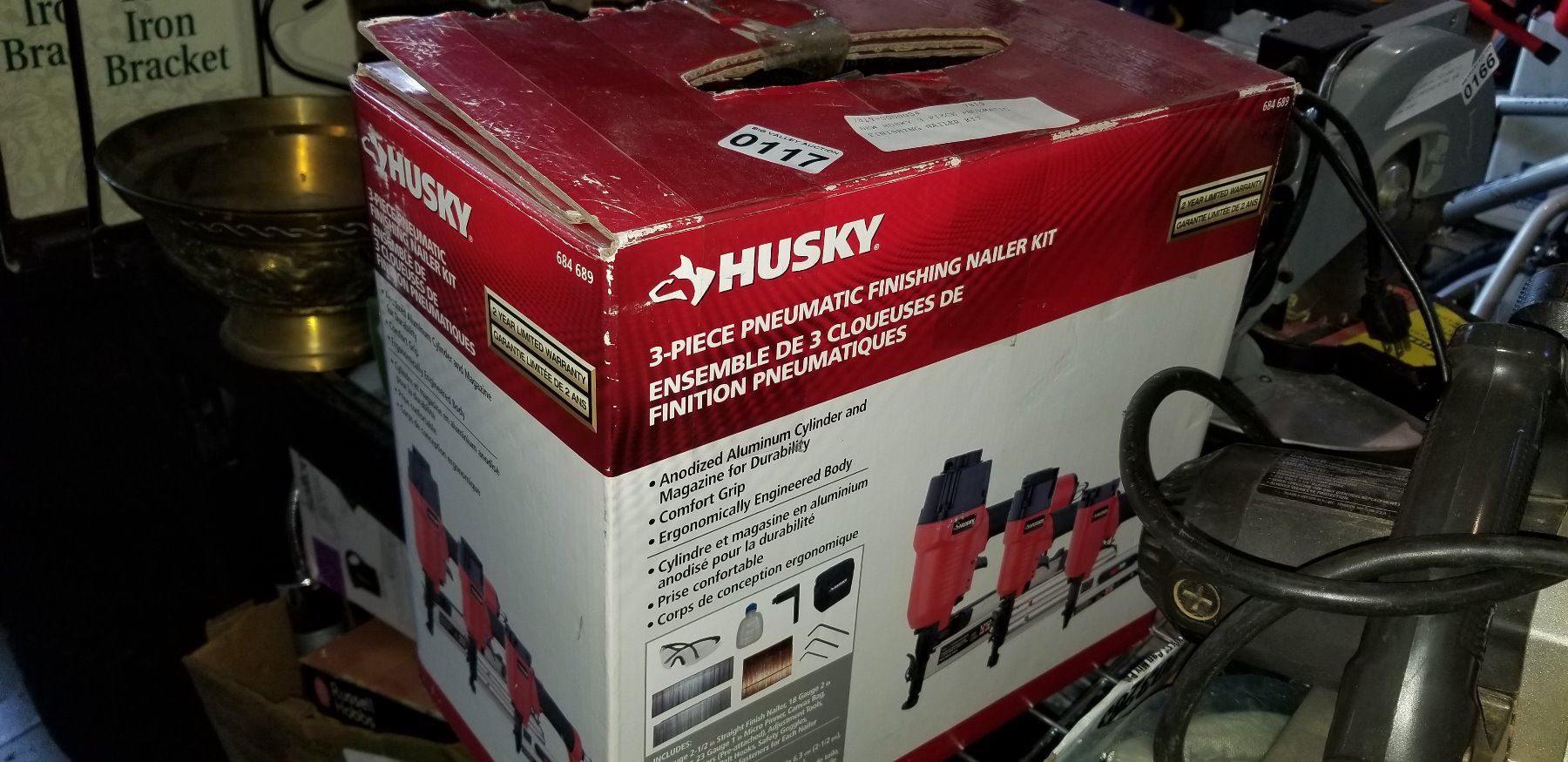 NEW HUSKY 3 PIECE PNUEMATIC FINISHING NAILER KIT