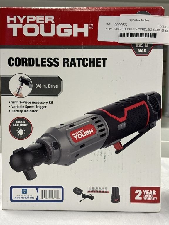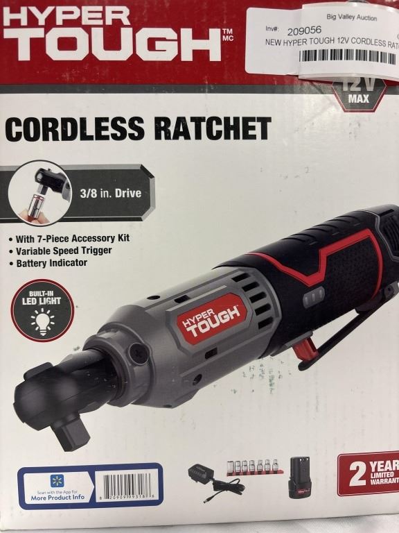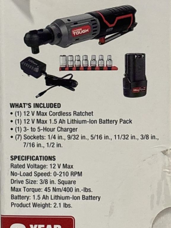 NEW HYPER TOUGH 12V CORDLESS RATCHET 3/8" 10PC KIT