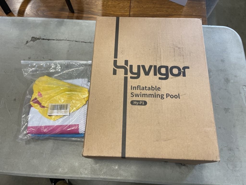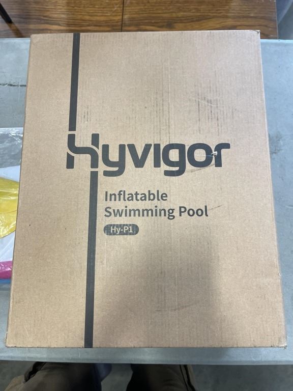 NEW HYVIGOR INFLATABLE SWIMMING POOL, 95" X 56" X 22" AND FLOATIE