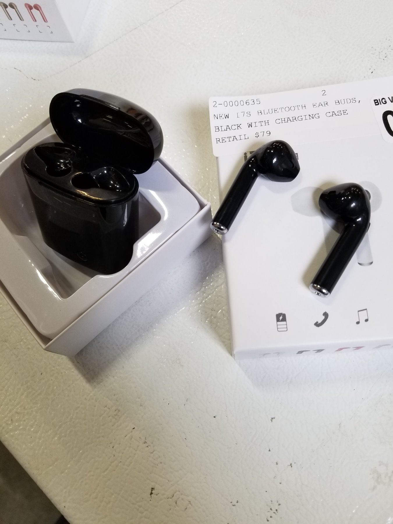 NEW I7S BLUETOOTH EAR BUDS, BLACK WITH CHARGING CASE RETAIL $79