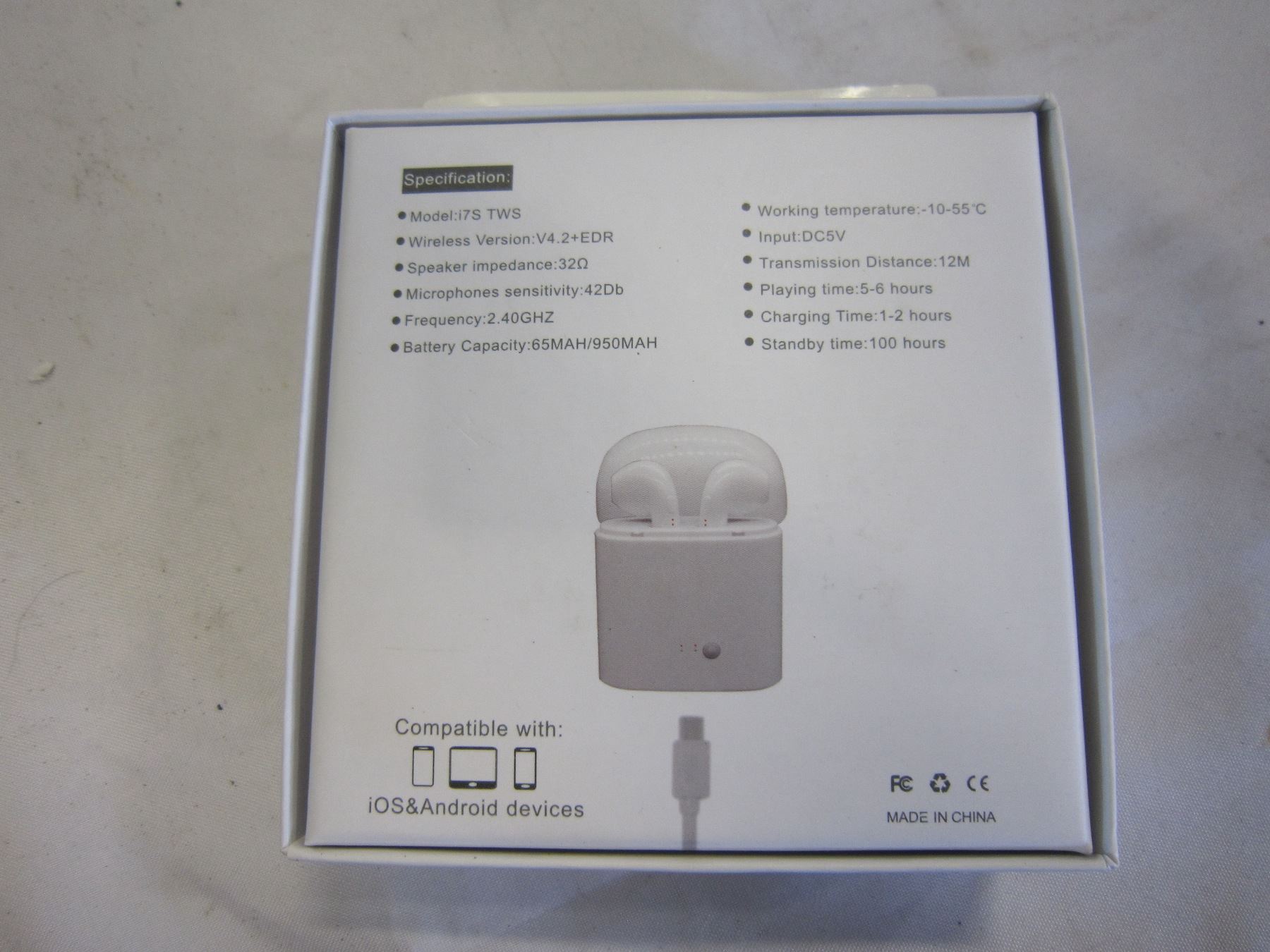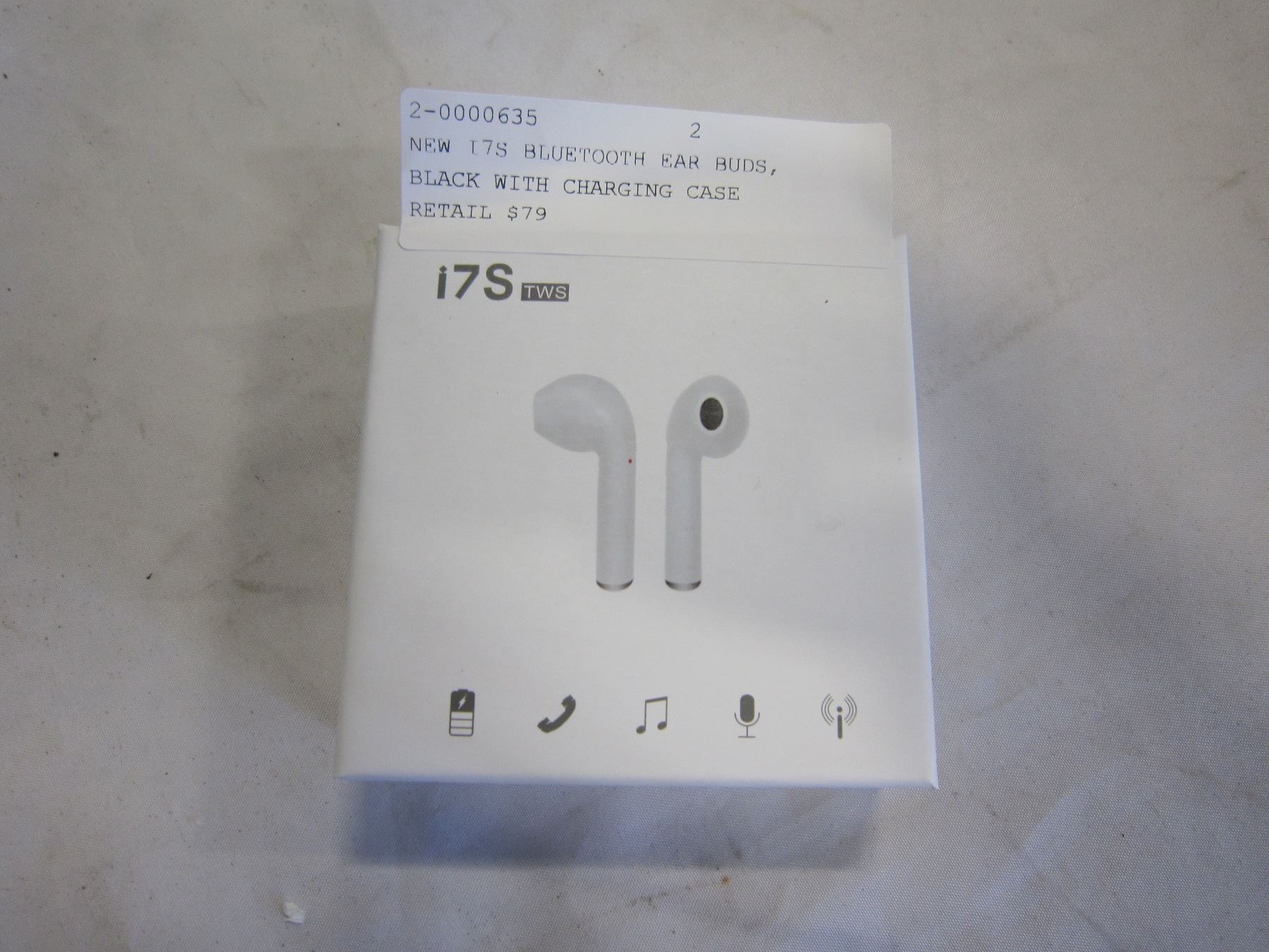 NEW I7S BLUETOOTH EAR BUDS, WHITE WITH CHARGING CASE RETAIL $79