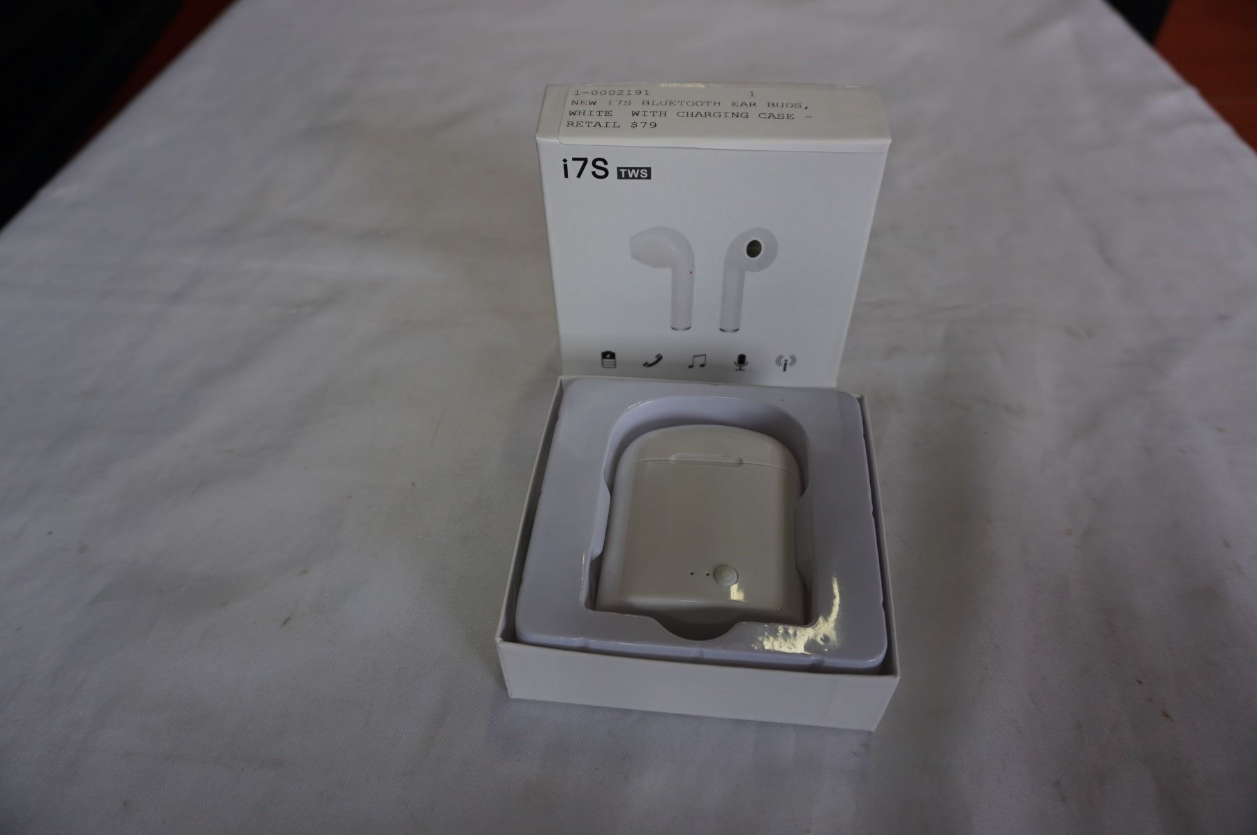 NEW I7S BLUETOOTH EAR BUDS, WHITE WITH CHARGING CASE - RETAIL $79