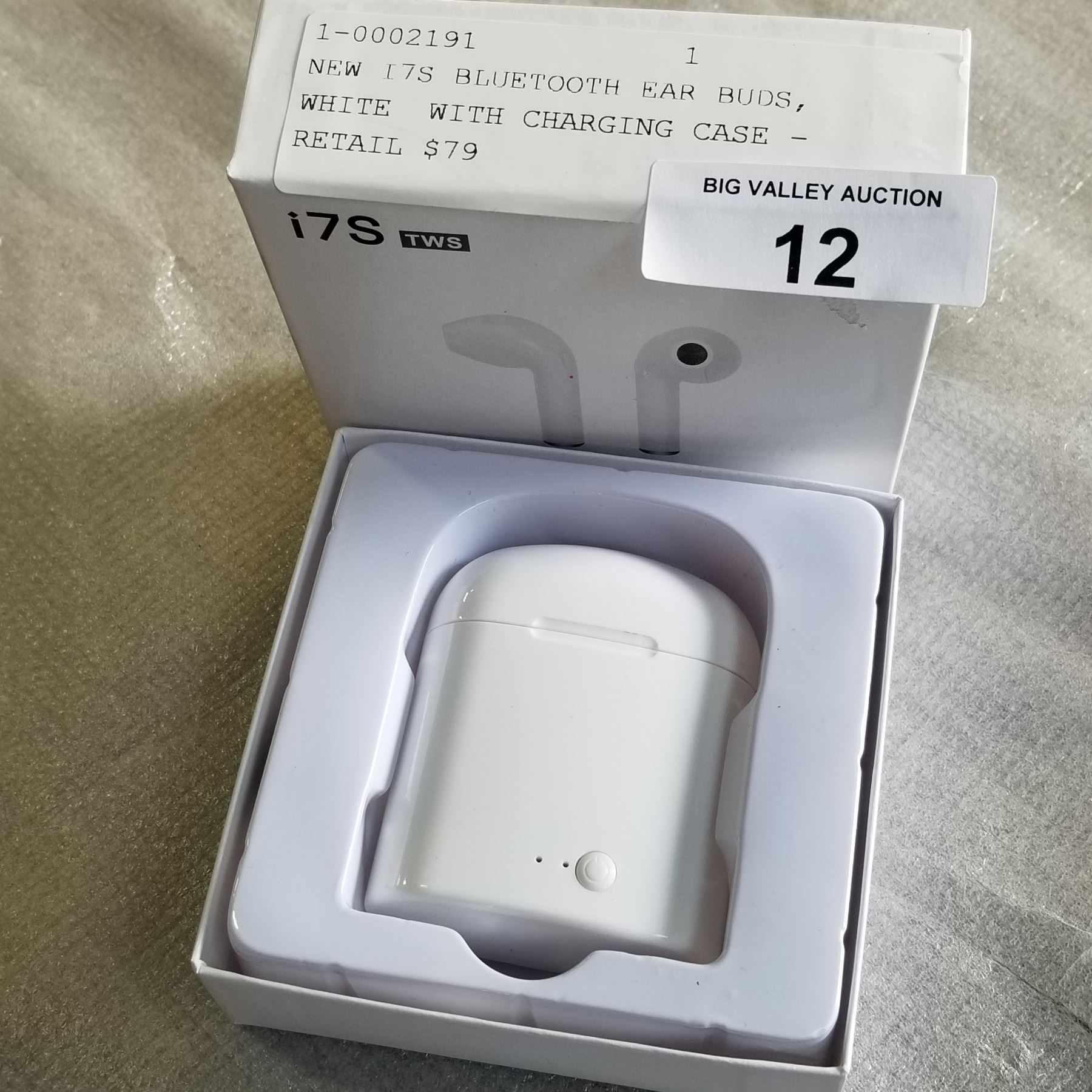 NEW I7S BLUETOOTH EAR BUDS, WHITE WITH CHARGING CASE - RETAIL $79