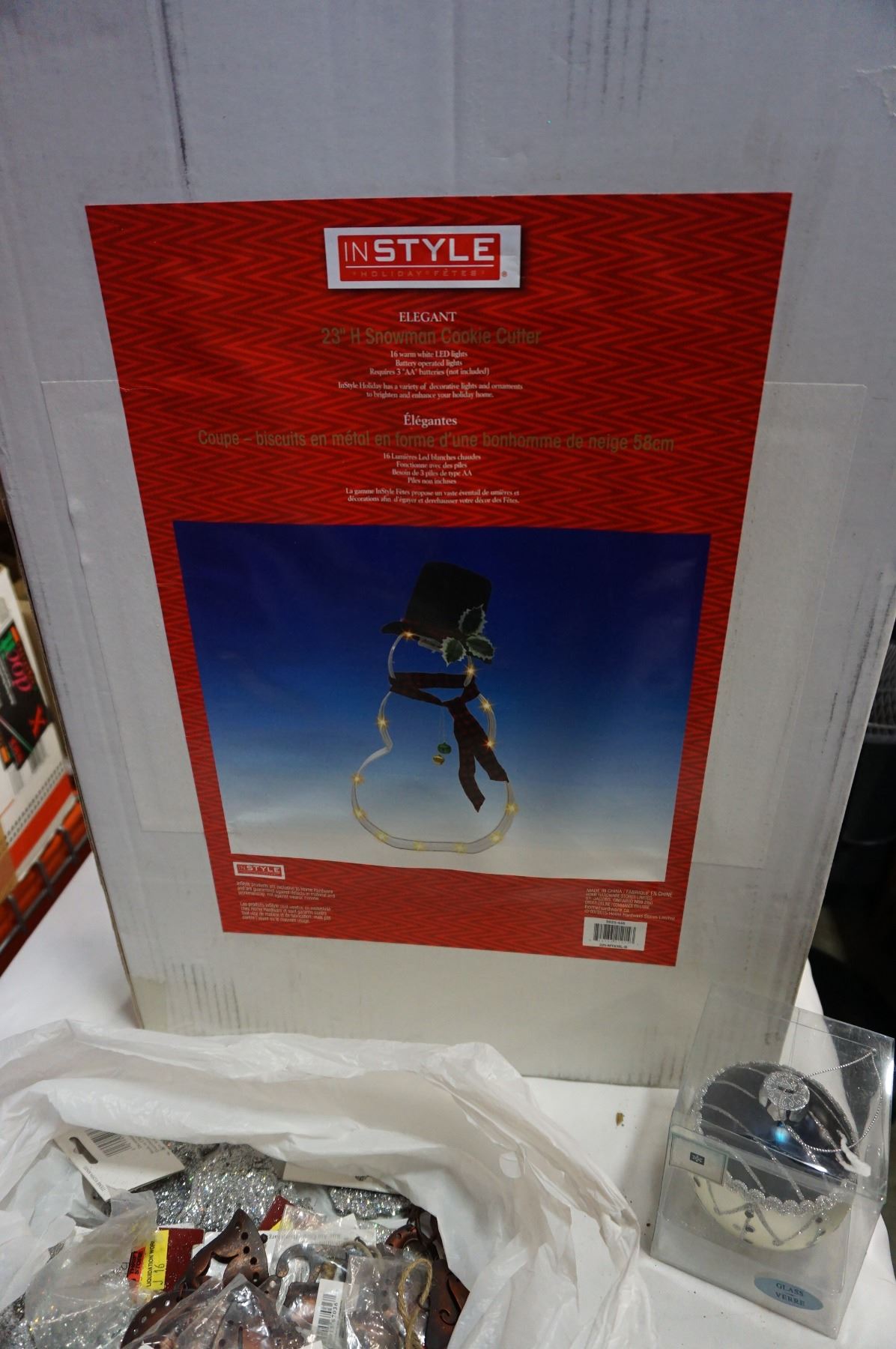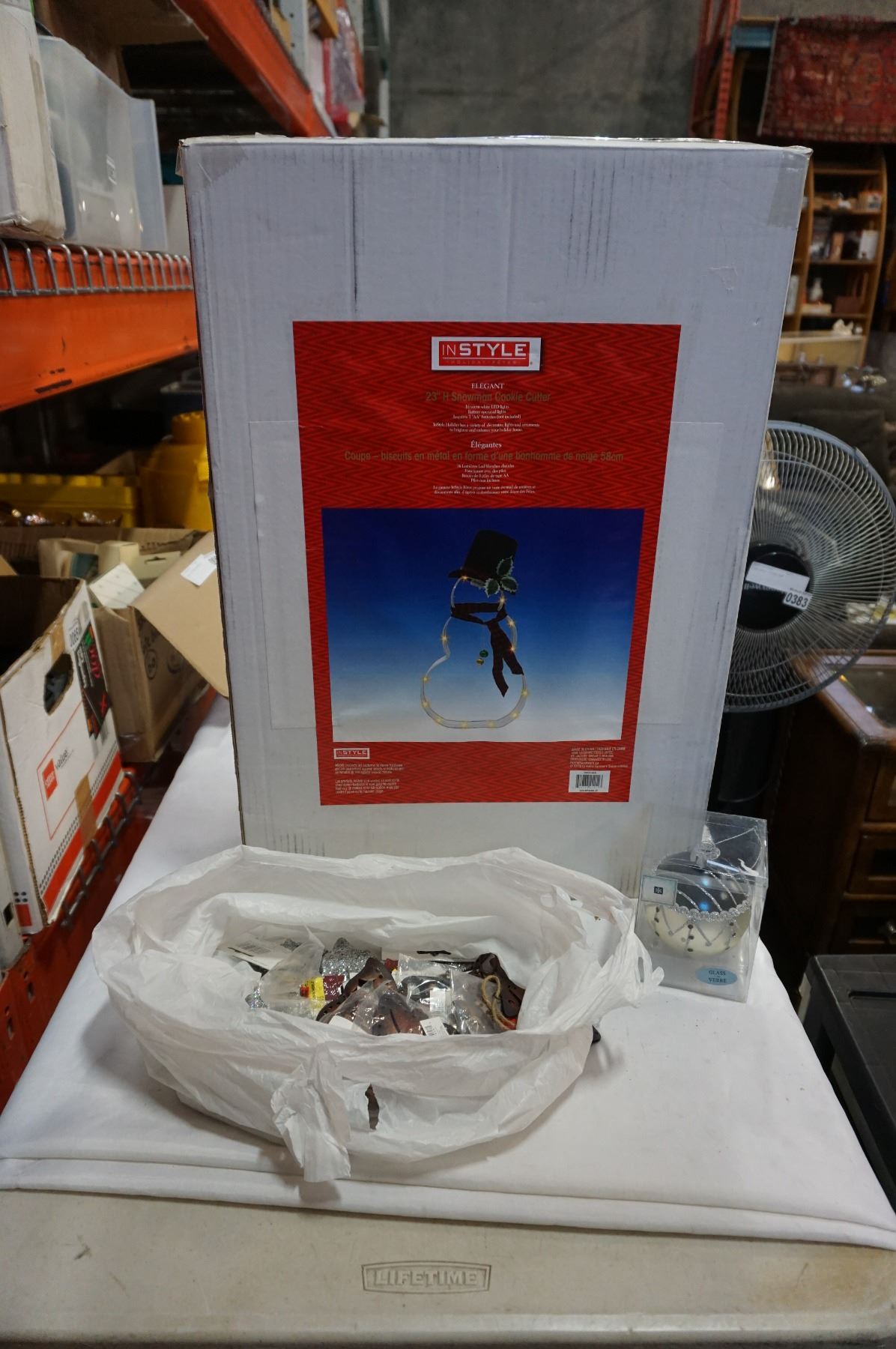 NEW ILLUMINATED SNOWMAN COOKIE CUTTER LAWN FIGURE AND LOT OF ORNAMENTS