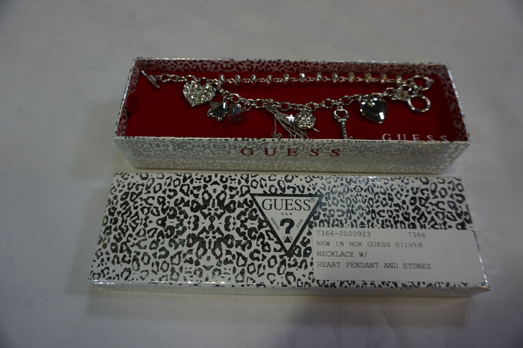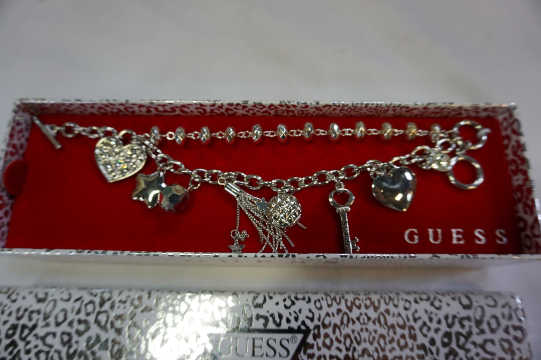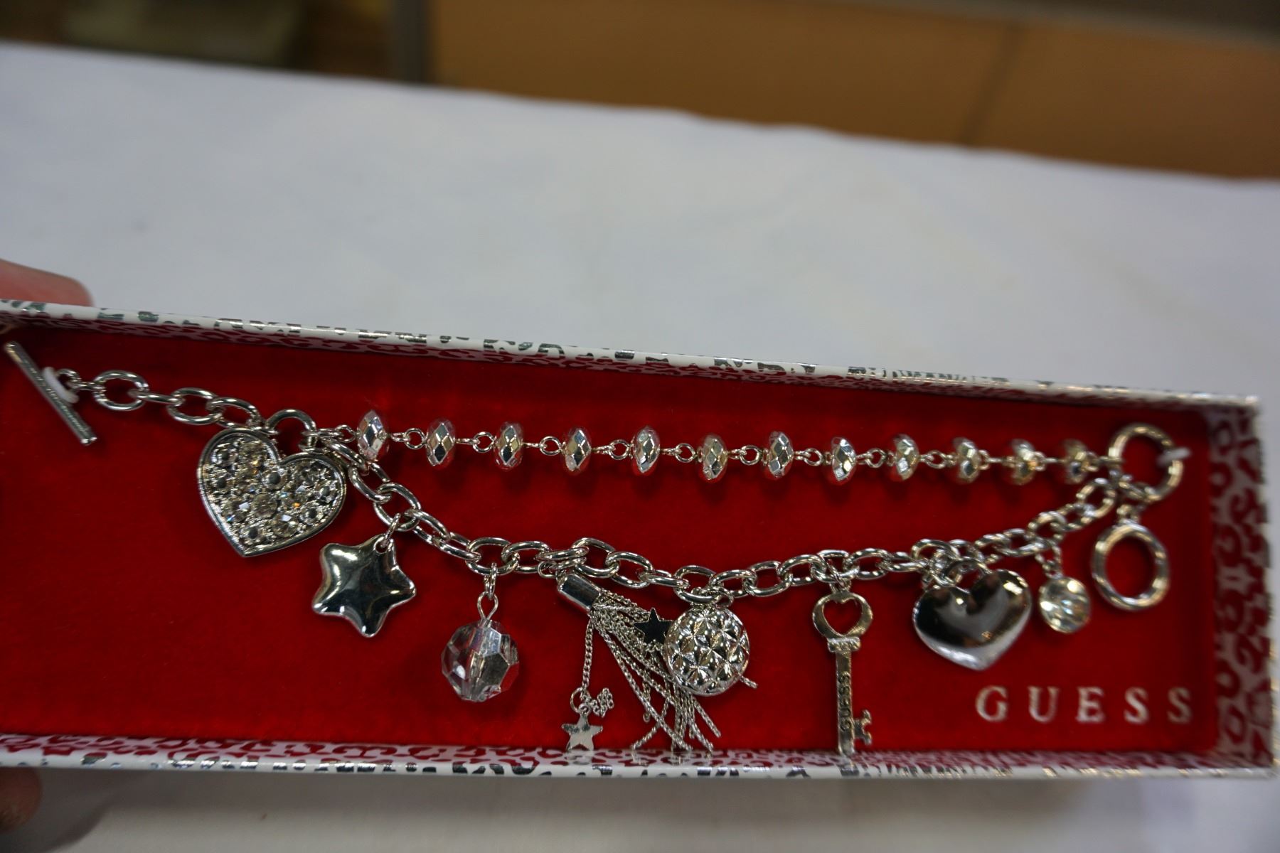 NEW IN BOX GUESS SILVER BRACELET W/ 8 CHARMS