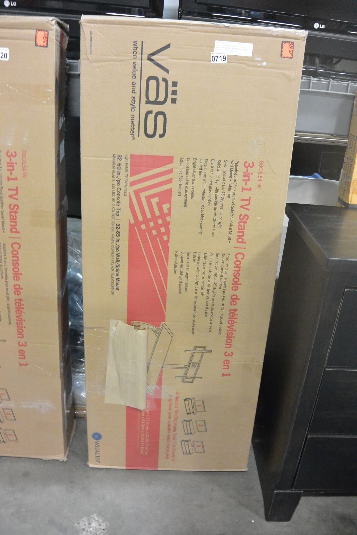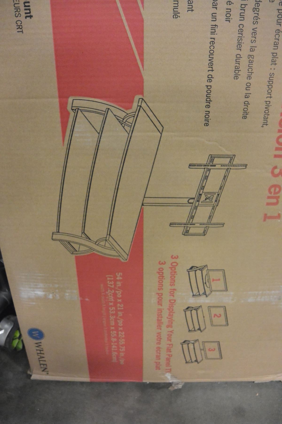 NEW IN BOX MODERN 3 IN 1 FLAT PANEL TV STAND, MOUNT SOLUTION FOR UP TO 65 INCH TVS