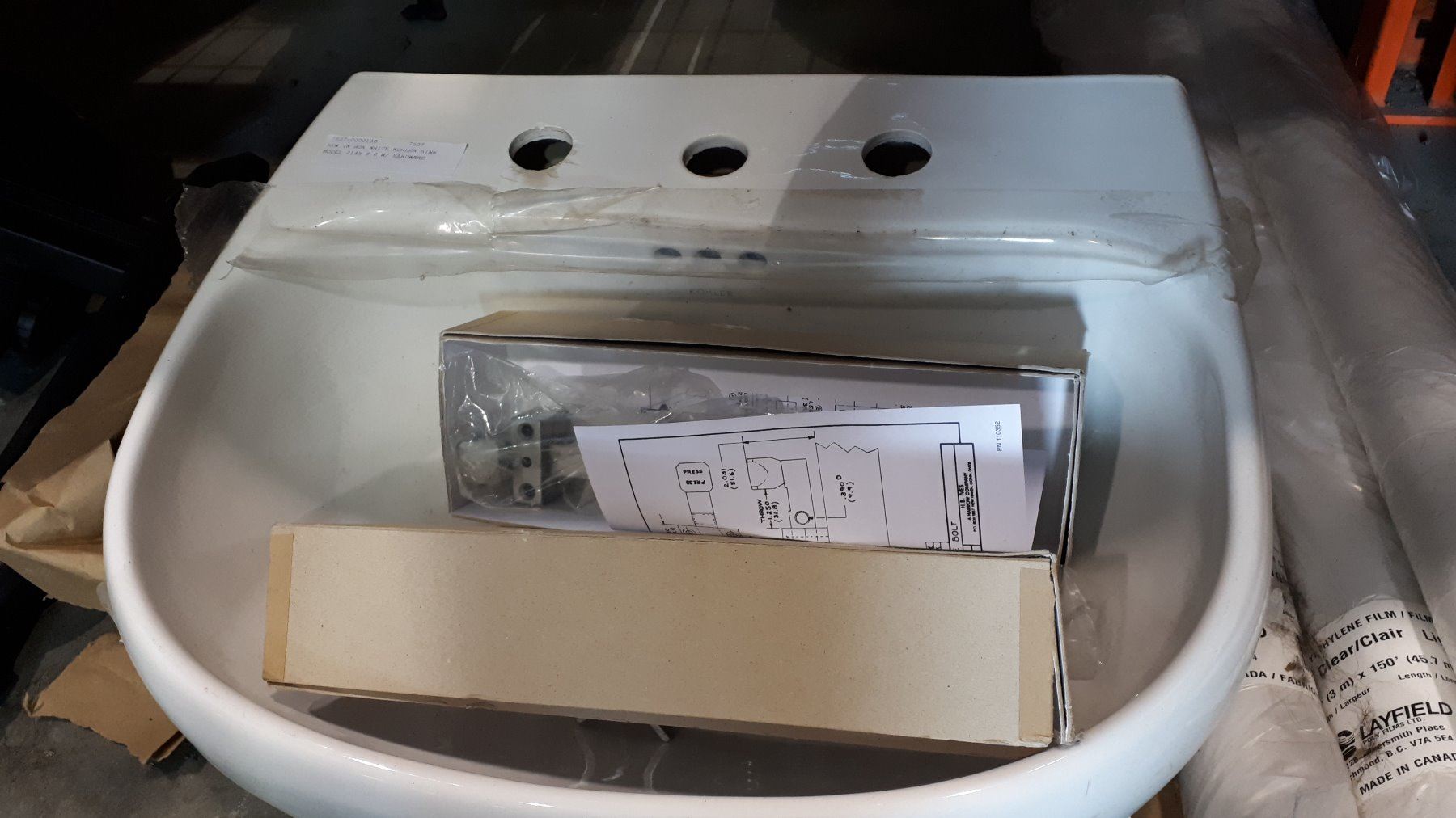 NEW IN BOX WHITE KOHLER SINK MODEL 2145 8 0 W/ HARDWARE