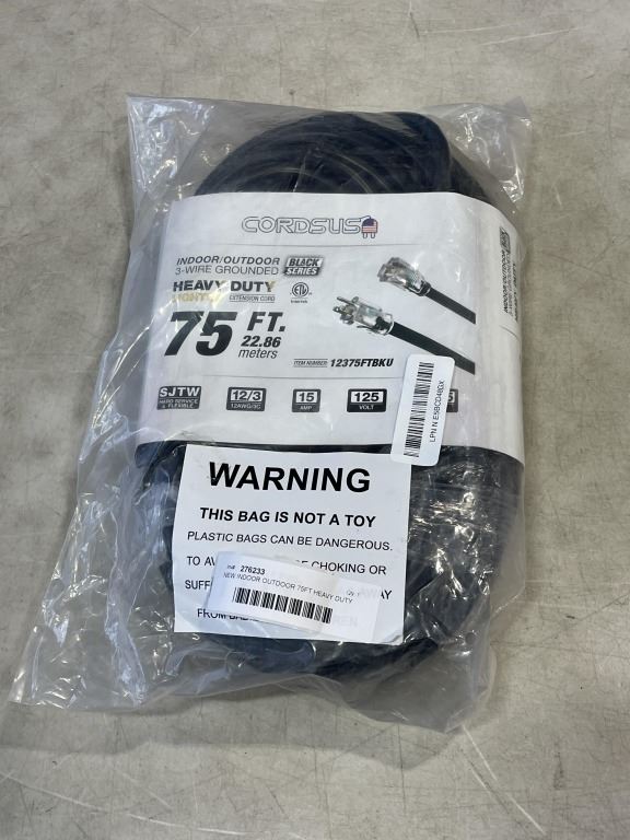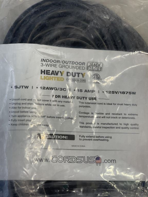 NEW INDOOR OUTDOOR 75FT HEAVY DUTY LIGHTED EXTENSION CORD, 12AWG, 3 WIRE