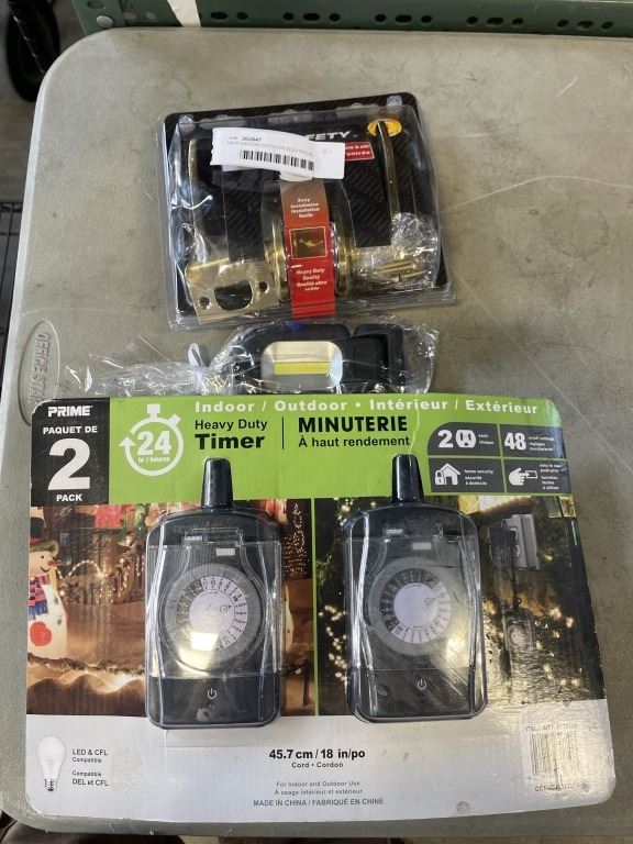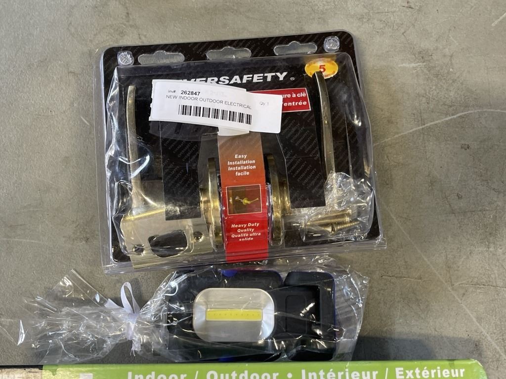 NEW INDOOR OUTDOOR ELECTRICAL TIMERS, PASSAGE SET, NEW LED LIGHT