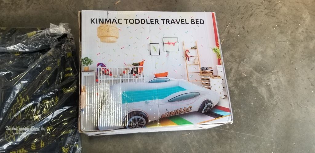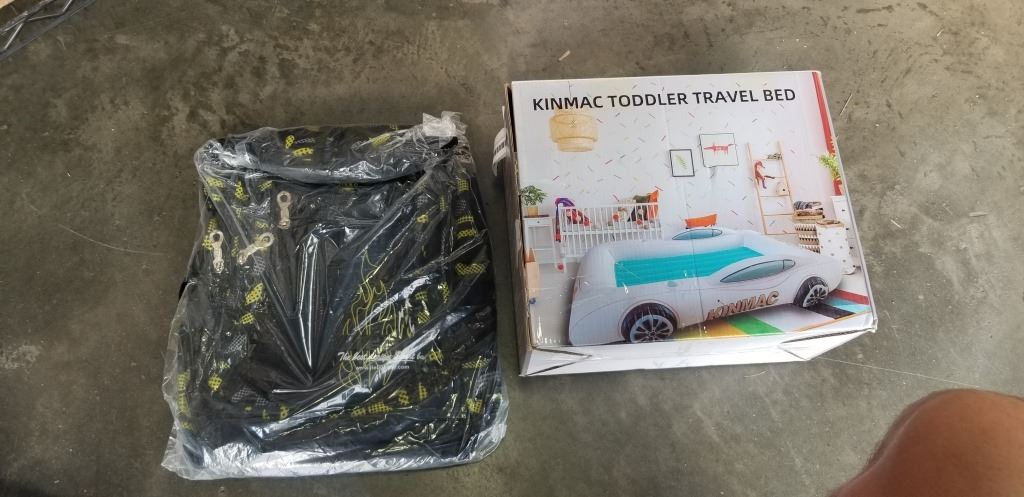 NEW INFLATABLE TODDLER RACE CAR AIR MATTRESS WITH ELECTRIC PUMP, AND NEW BACKPACK