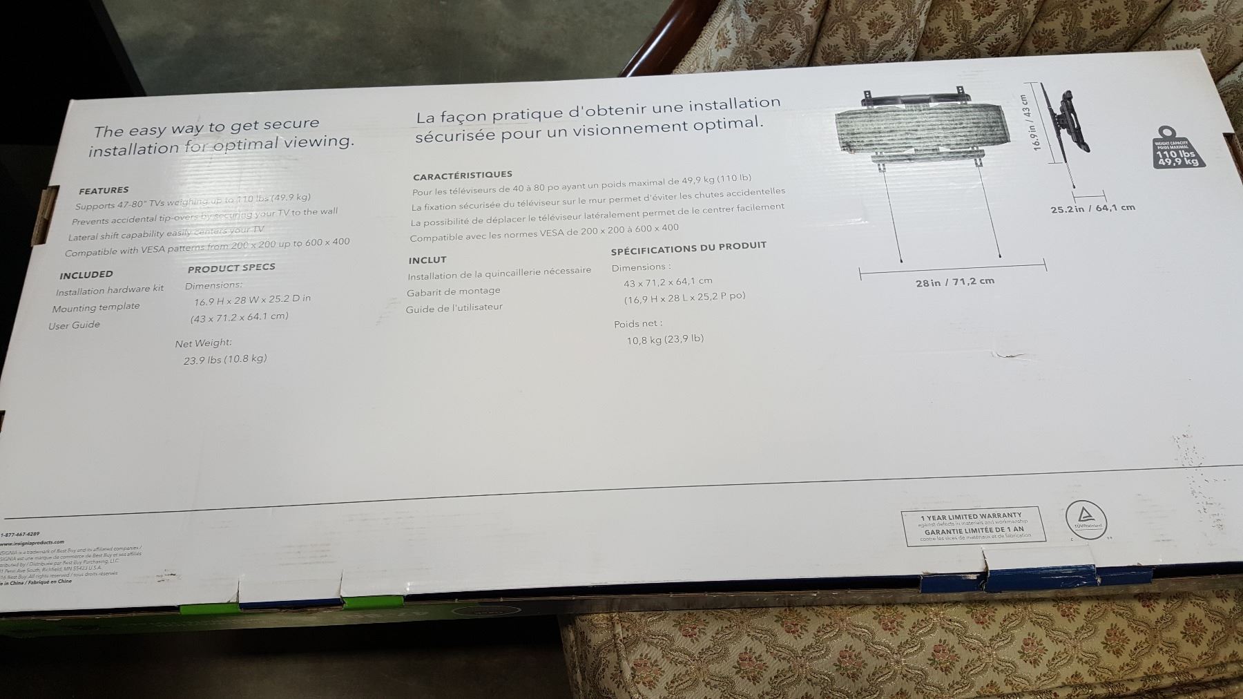 NEW INSIGNIA OVERSTOCK FULL MOTION TV WALL MOUNT 47 TO 80 INCH