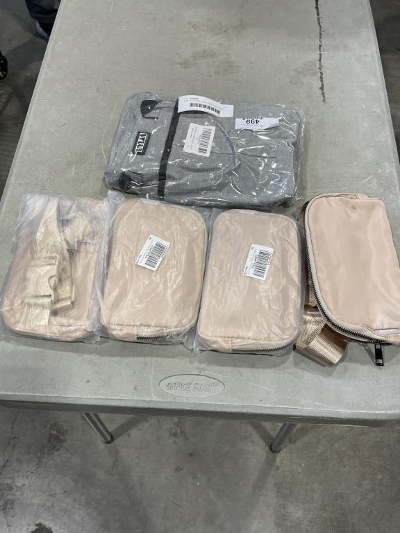 NEW INSULATED LUNCH BAG AND 4 NEW WAIST BAGS
