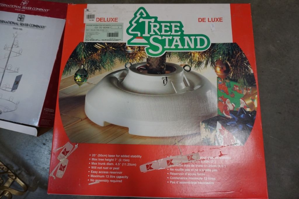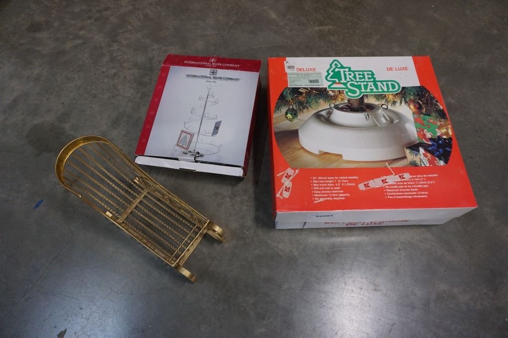 NEW INTERNATIONAL SILVER CHRISTMAS CARD TREE, SLEIGH, AND DELUXE TREE STAND