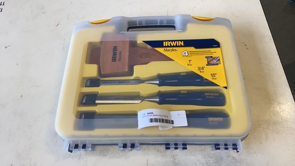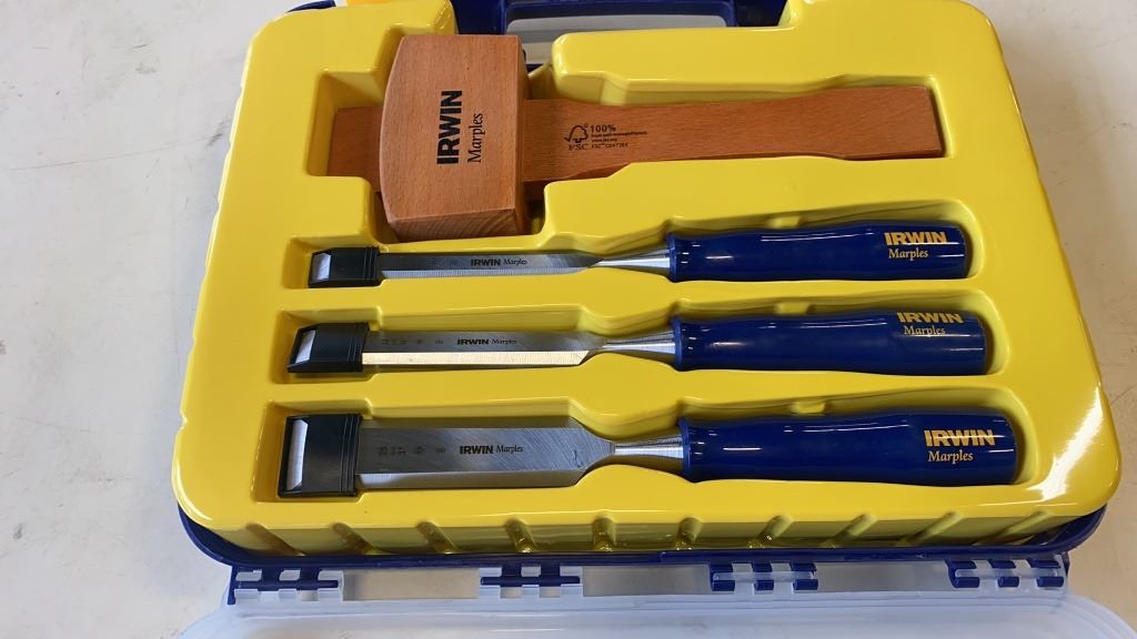NEW IRWIN MARPLES 4 PIECE WOODWORKING CHISEL SET WITH WOODEN MALLET