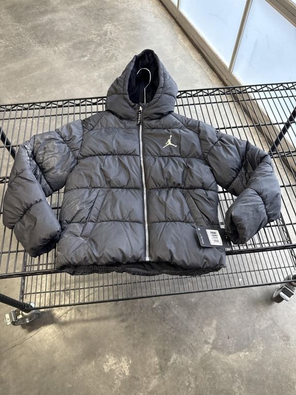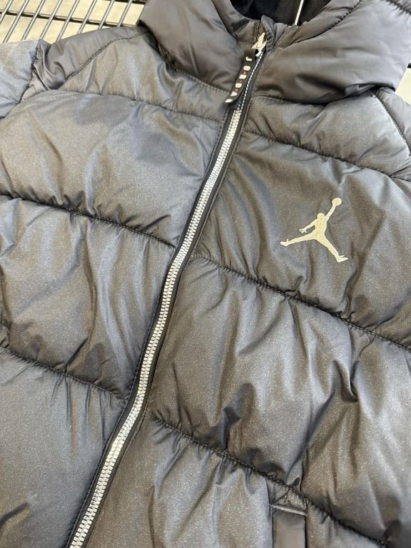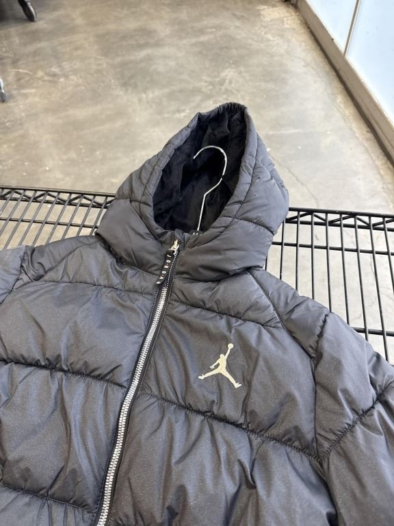 NEW JORDAN JUMPMAN YOUTH MEDIUM 10-12YRS BLACK PUFFY JACKET, RETAIL $136, HAS DIRT SCUFF FROM CARDBOARD