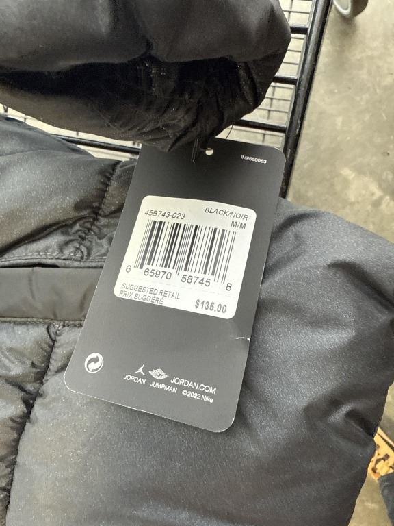 NEW JORDAN JUMPMAN YOUTH MEDIUM 10-12YRS BLACK PUFFY JACKET, RETAIL $136, HAS DIRT SCUFF FROM CARDBO
