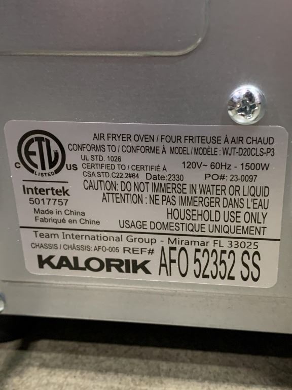 NEW KALORIK 22QT TOUCHSCREEN AIR FRYER OVEN - TESTED WORKING, RETAIL $169 , STORE DISPLAY, UNUSED, N