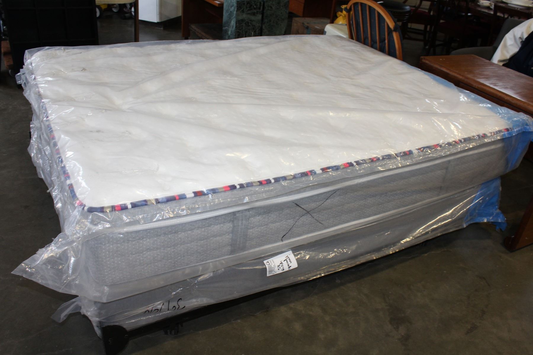NEW KINGSDOWN COOPER QUEENSIZE EUROTOP MEDIUM FIRM MATTRESS, WITH BOXSPRING AND ROLLER FRAME, RETAIL $2699