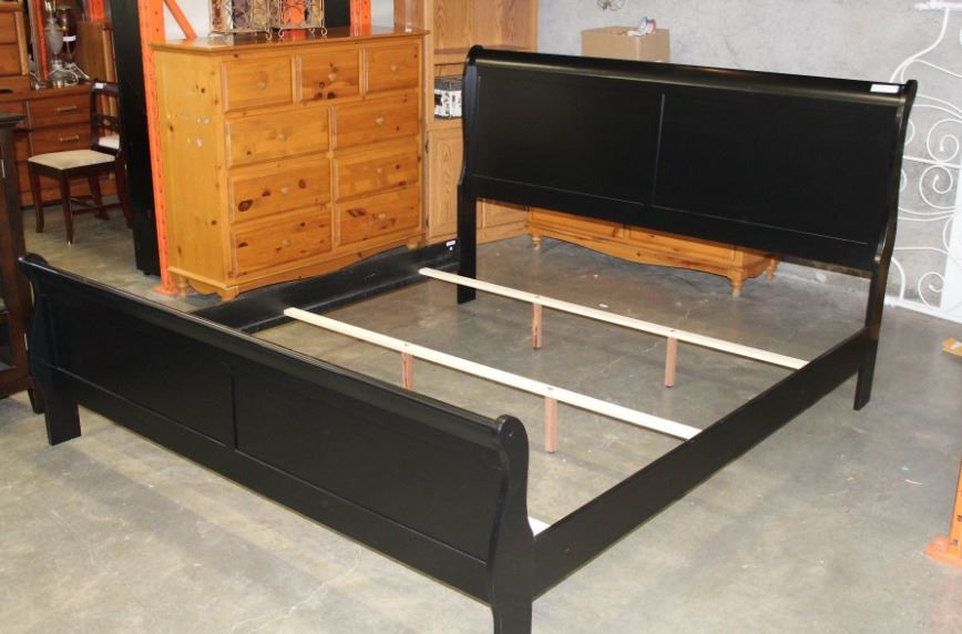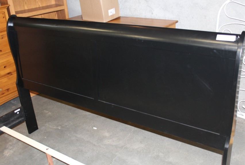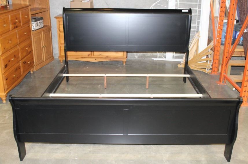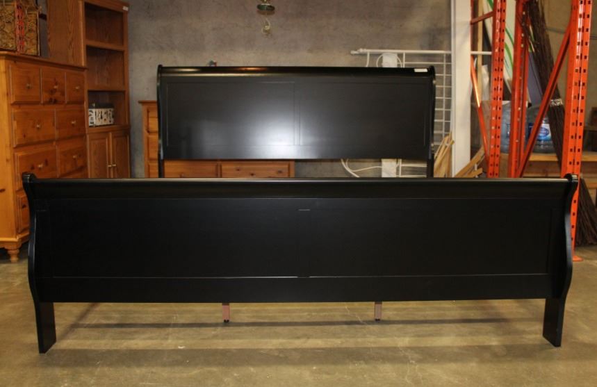 NEW KINGSIZE AVENZA BLACK MODERN SLEIGHBED, SOLID WOOD CONSTRUCTION, RETAIL $1499