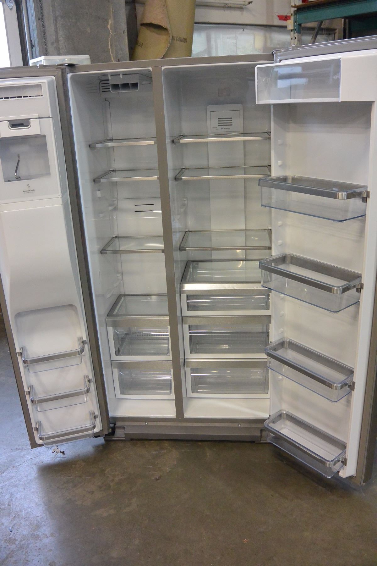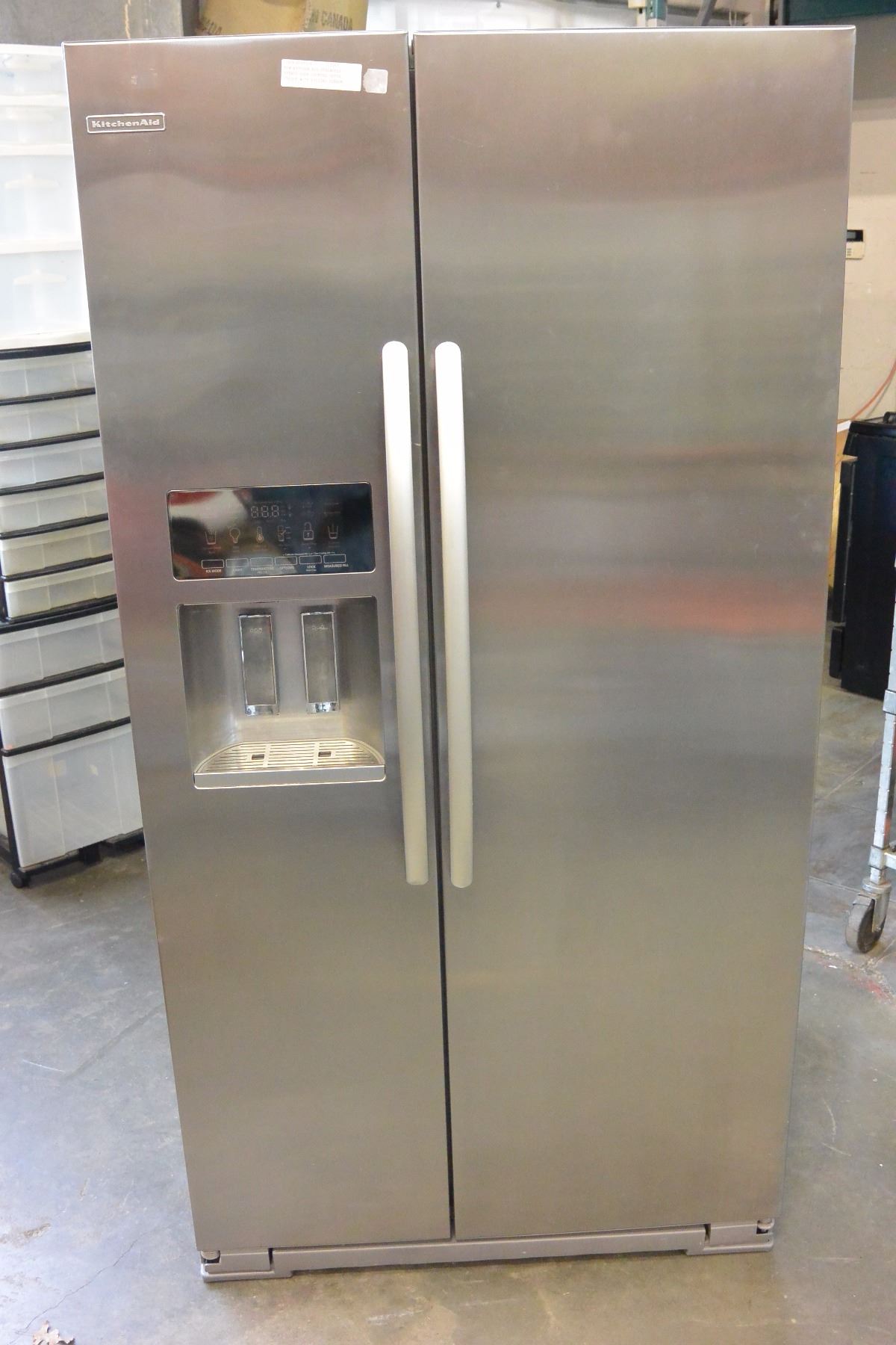 NEW KITCHEN AID STAINLESS FRENCH DOOR COUNTER DEPTH FRIDGE WITH DIGITAL SCREEN WATER AND ICE 36 INCH WIDE 27 INCH DEEP