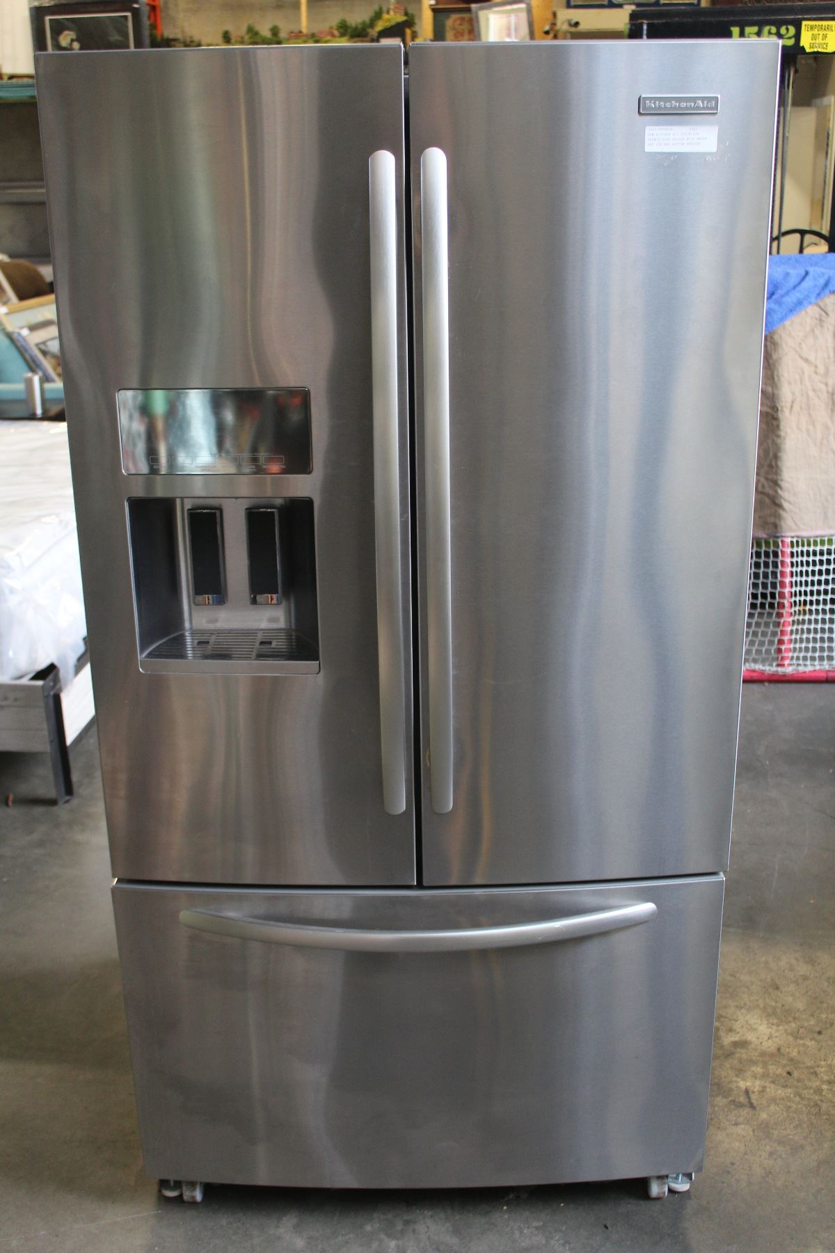 NEW KITCHEN AID STAINLESS FRENCH DOOR FRIDGE WITH WATER AND ICE AND BOTTOM FREEZER DRAWER RETAIL SCRATCH AND DENT RETAIL $2899