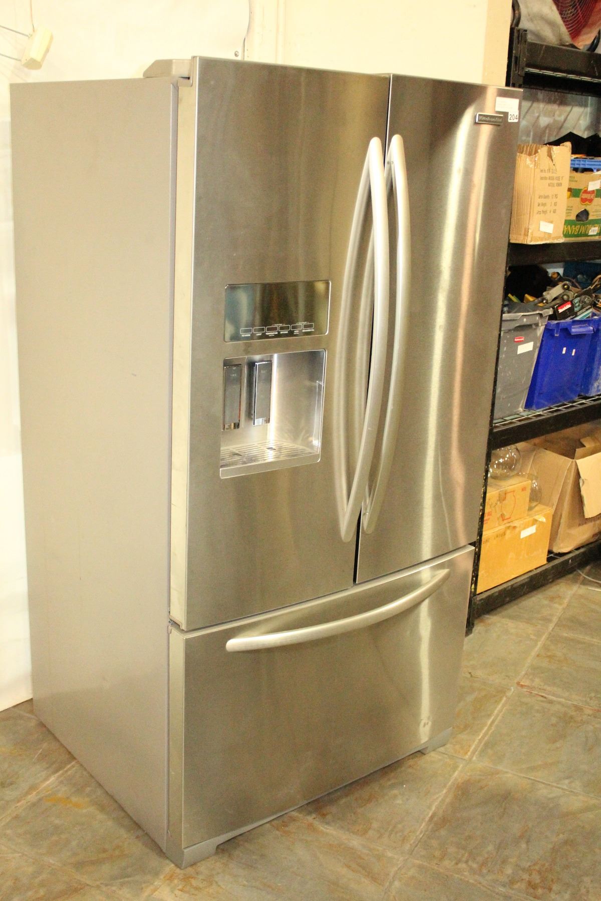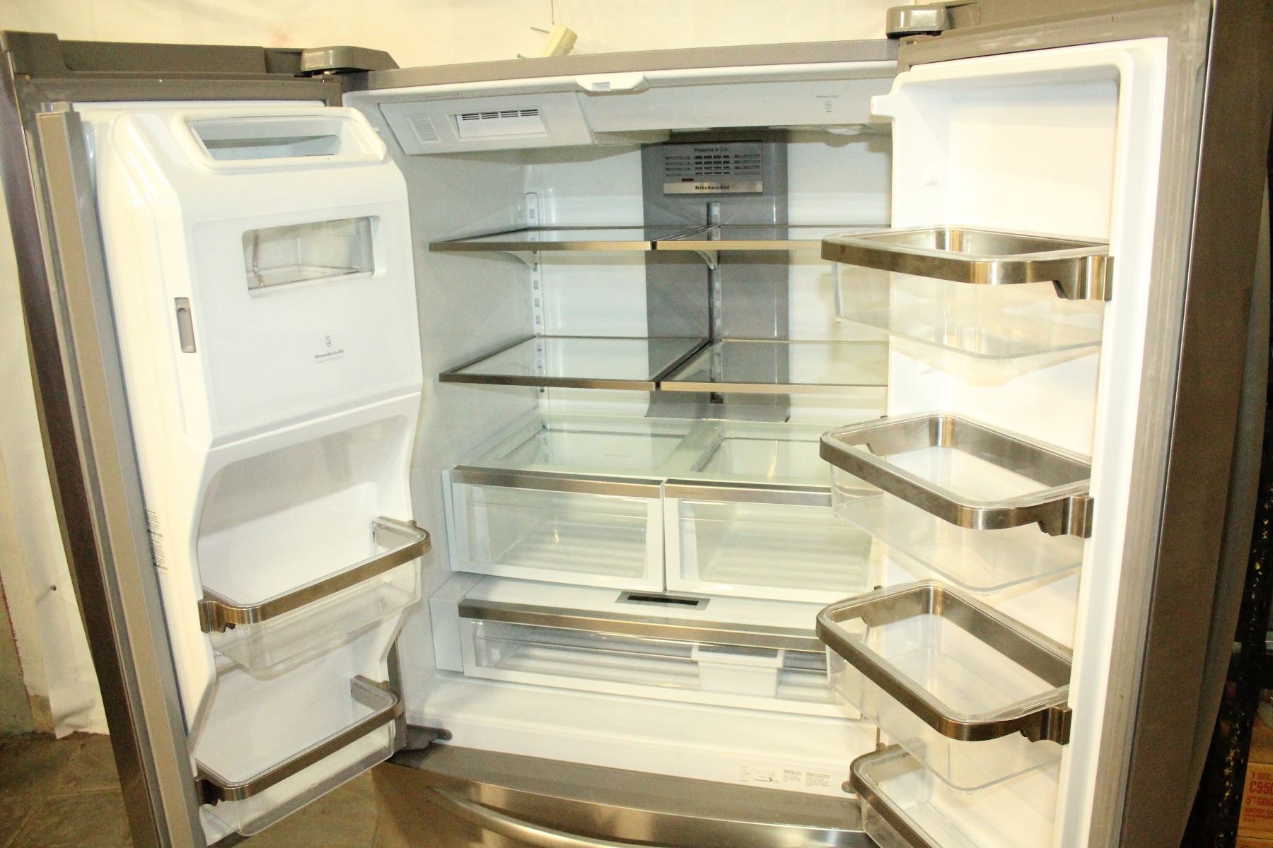 NEW KITCHEN AID STAINLESS FRENCH DOOR REFRIDGERATOR WITH BOTTOM FREEZER WITH WATER AND ICE, RETAIL $