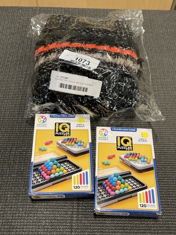 NEW KNITTED TOQUE AND NECK WARMER SET AND 2 NEW IQ PUZZLES