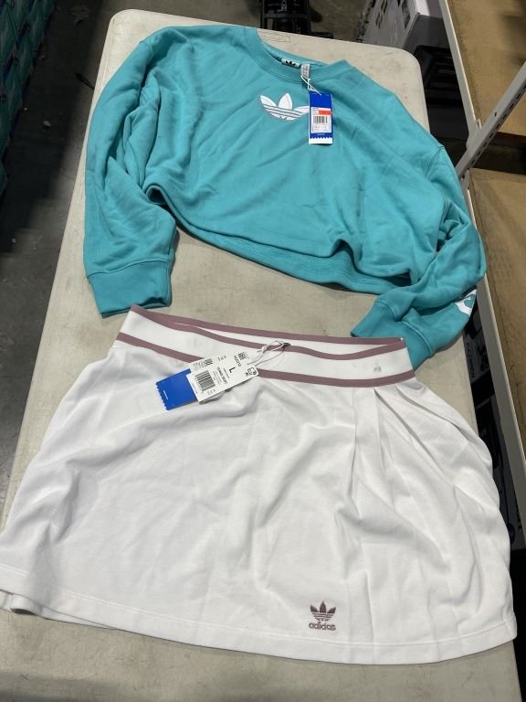NEW LADIES ADIDAS CROP CREW NECK AND SKIRT - SIZE LARGE