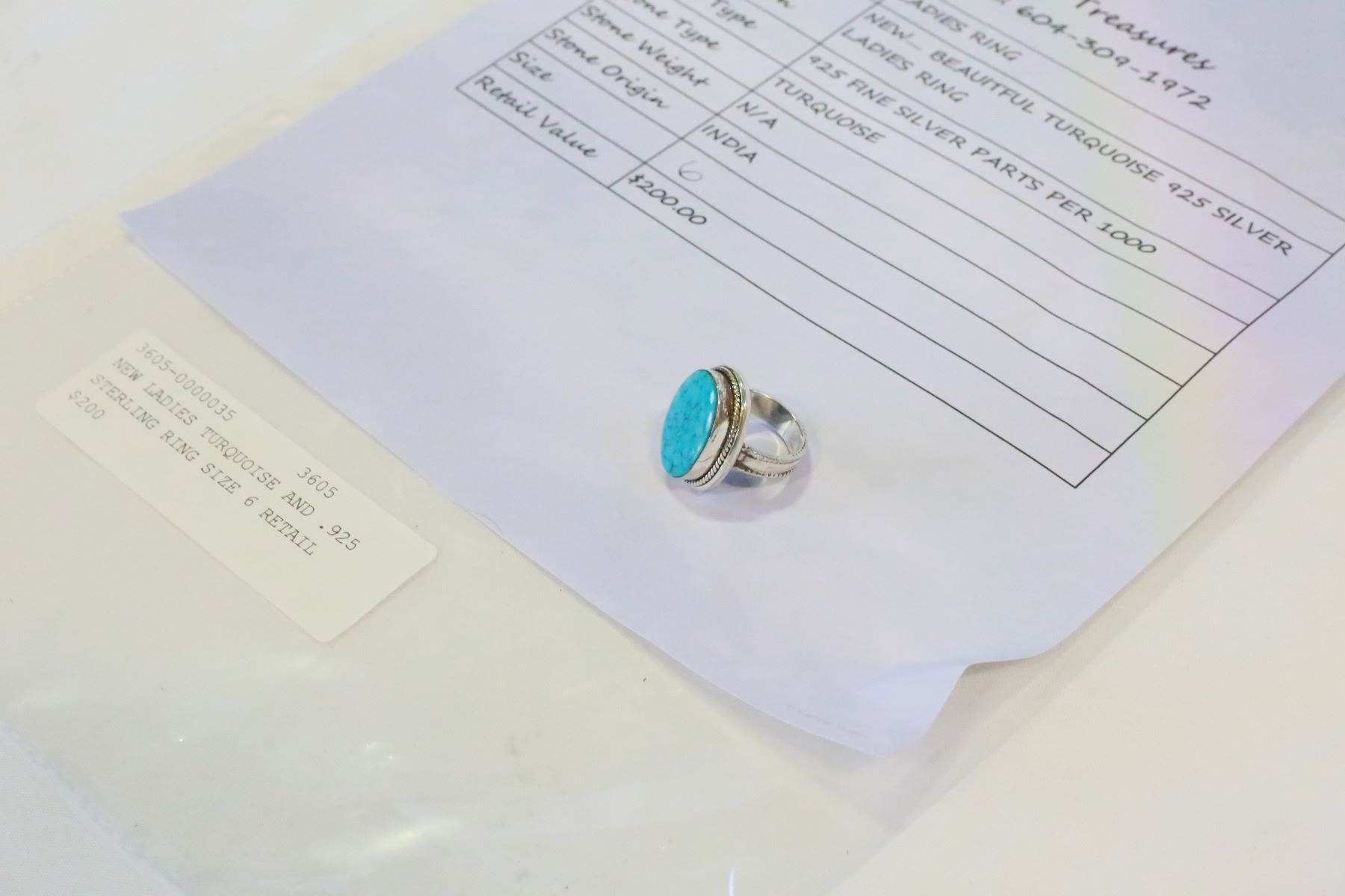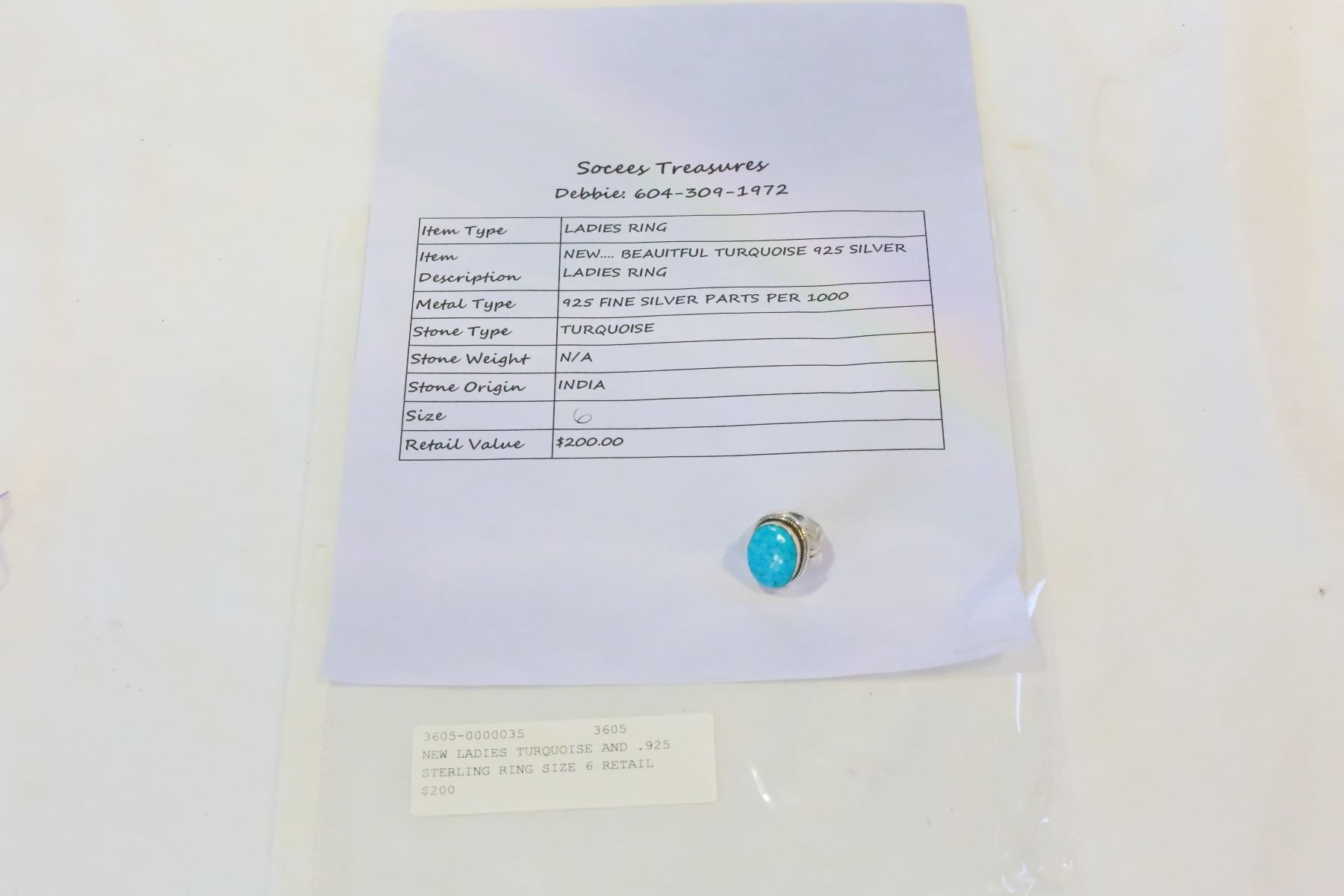 NEW LADIES TURQUOISE AND .925 STERLING RING SIZE 6 RETAIL $200
