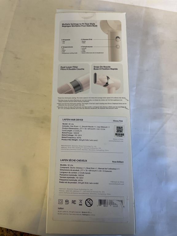 NEW LAIFEN SWIFT SE LITE PINK 1400W HAIR DRYER - TESTED WORKING, RETAIL $109