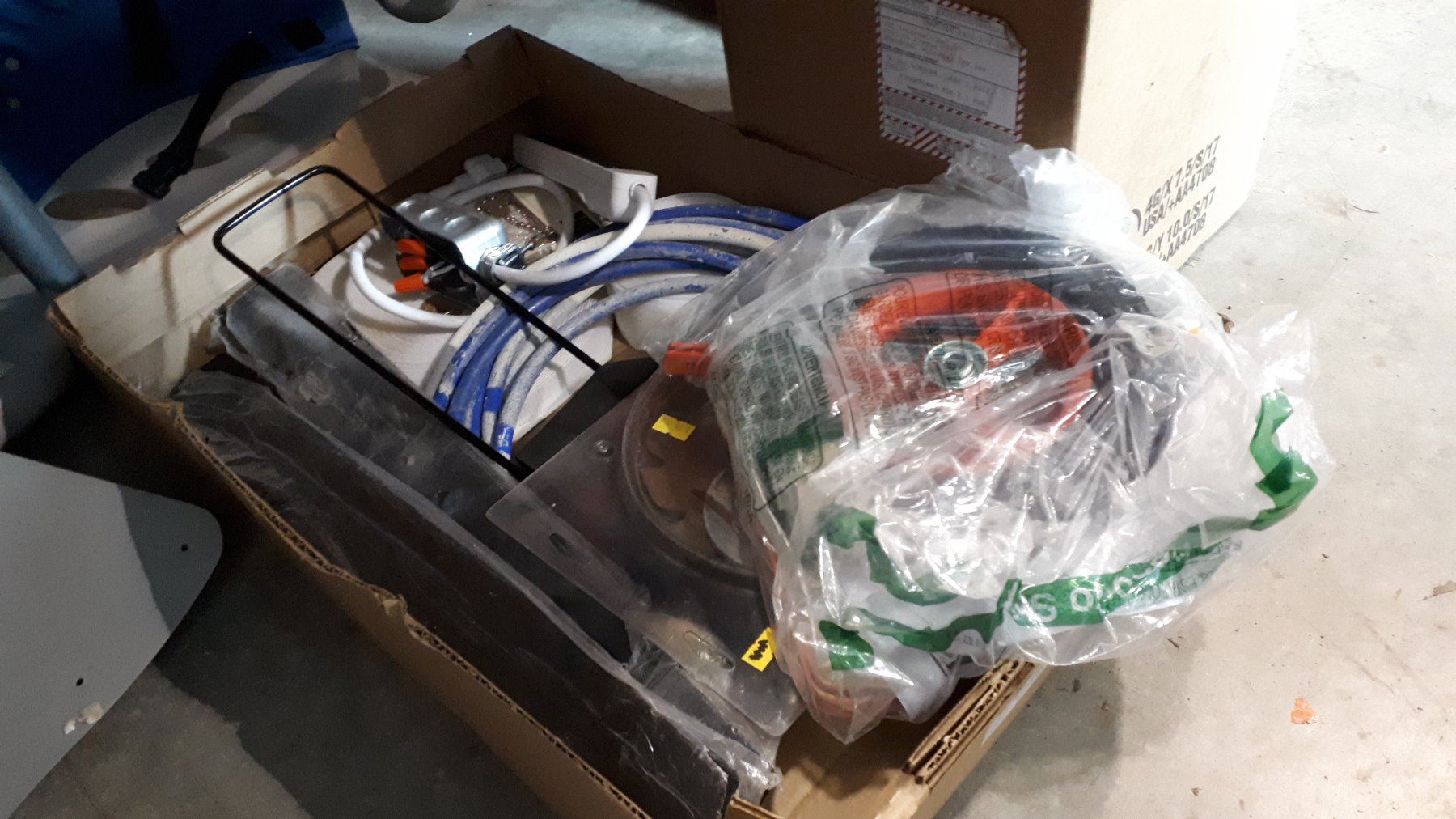 NEW LAWN MOWER BLADES, WHEEL BARROW, WHEEL EXTENTION CORD, AND MORE