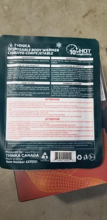 NEW LOT OF 4 THINKA DISPOSIBLAE BODY WARMERS
