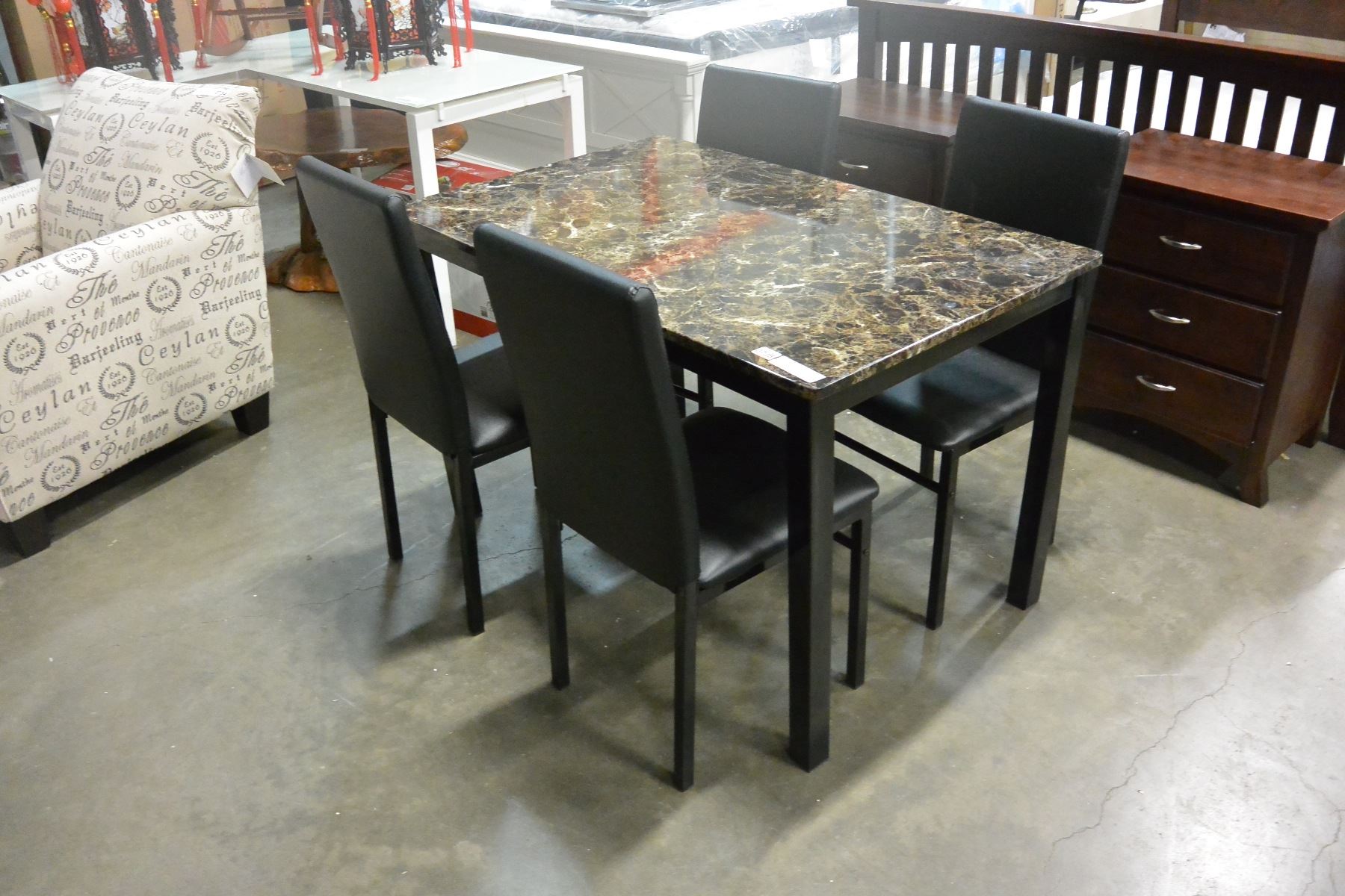 NEW MARBLE LOOK DINING TABLE AND 4 CHAIRS, RETAIL $799