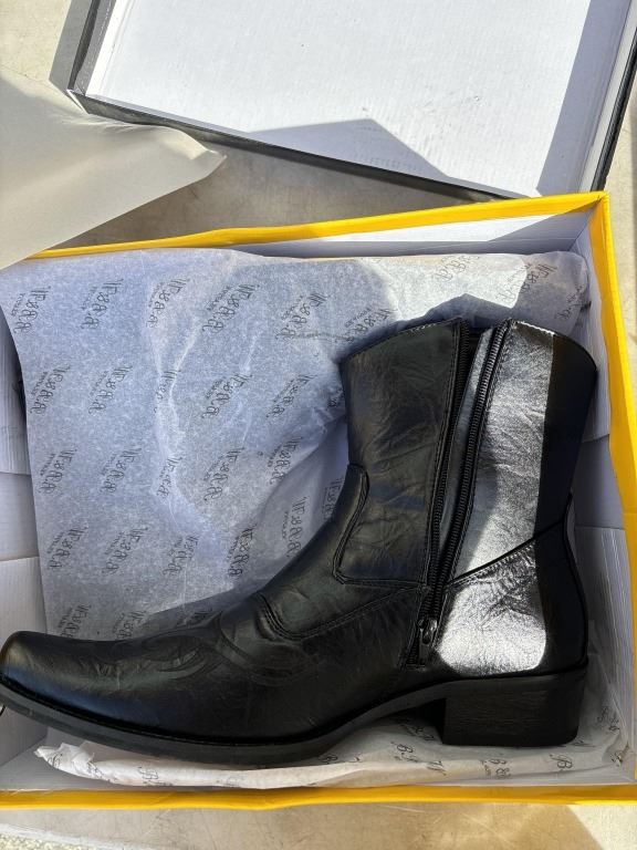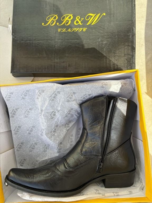 NEW MENS HALF ZIP COWBOY ANKLE BOOTS, BLACK SIZE 8