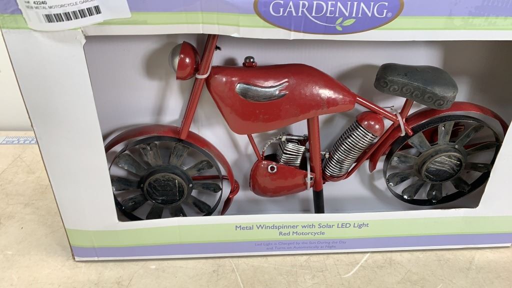 NEW METAL MOTORCYCLE GARDEN WINDSPINNER WITH SOLAR LIGHT