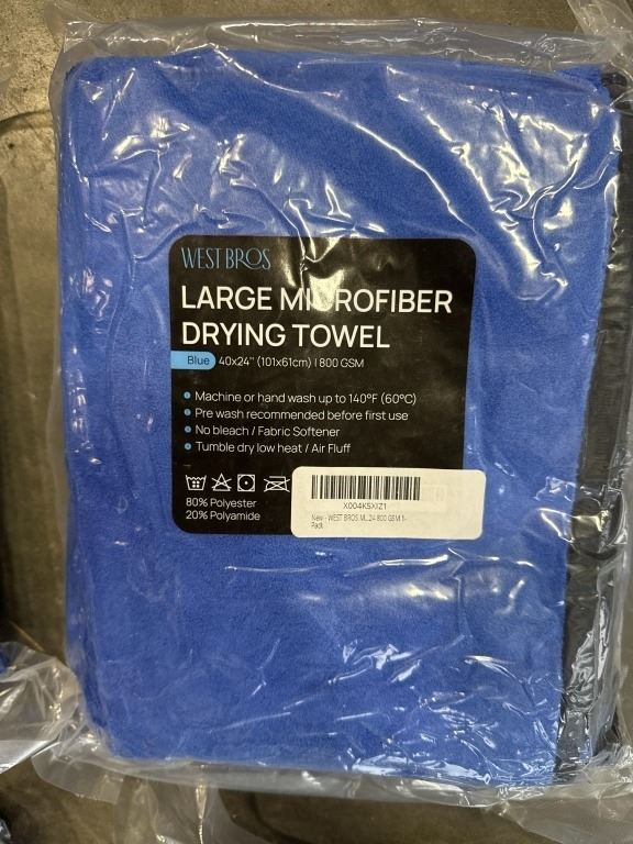 NEW MICROFIBRE DRYING TOWELS, 4 GREY 16 X 16 INCH, (PACKS OF 2) AND LARGE SIZE 2X BLUE 40 X 24 INCH EACH, ALL ARE 800GSM