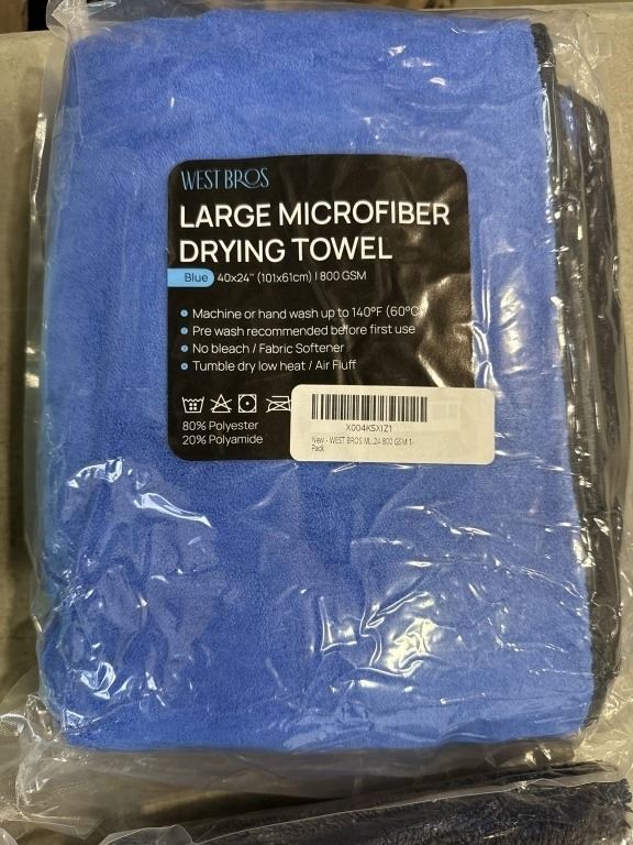 NEW MICROFIBRE DRYING TOWELS, 4 GREY 16 X 16 INCH, (PACKS OF 2) AND LARGE SIZE GREEN AND BLUE 40 X 24 INCH EACH, ALL ARE 800GSM
