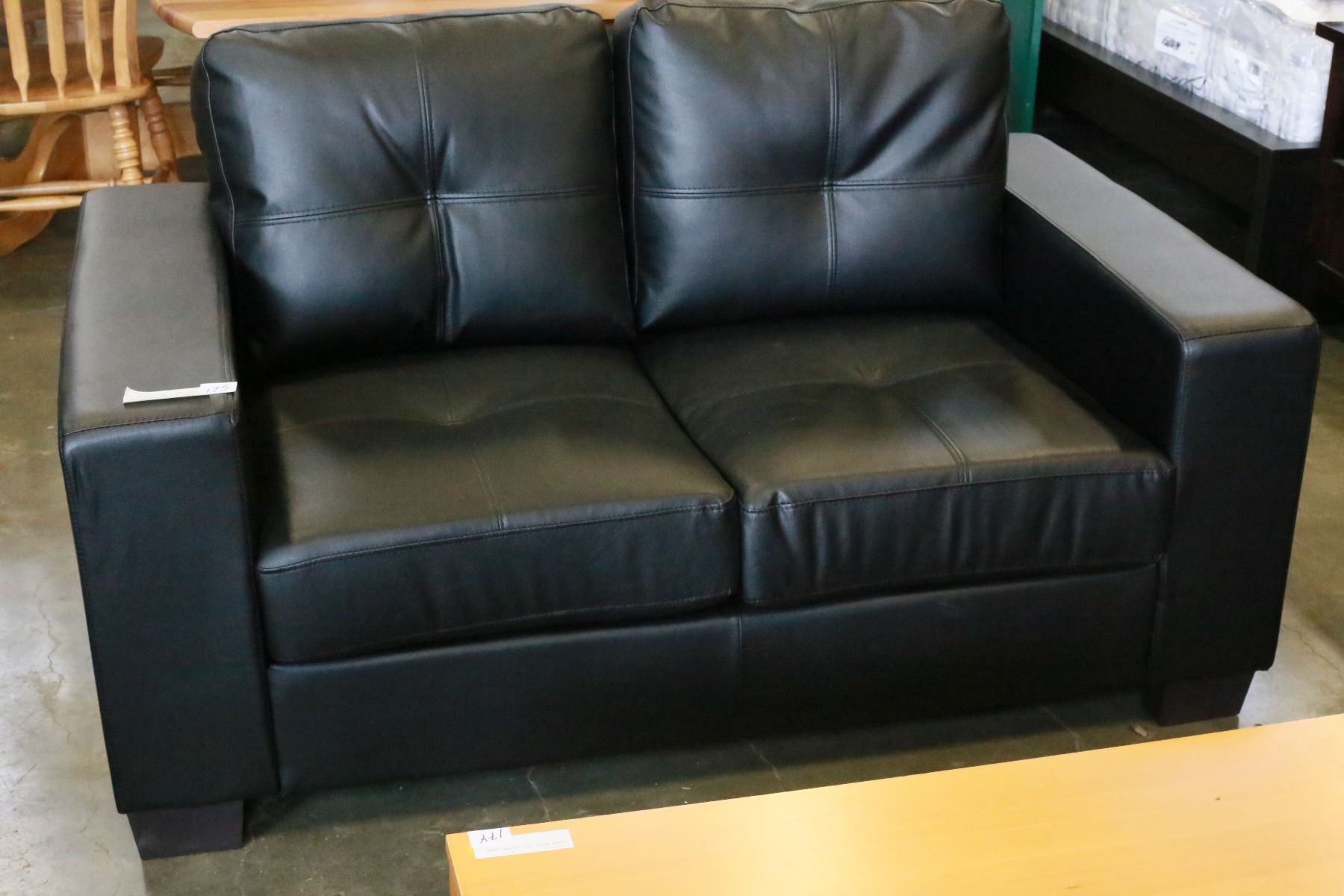 NEW MODERN BLACK SQUARED ARM LOVESEAT WITH REMOVABLE BACK AND SEAT CUSHIONS RETAIL $999