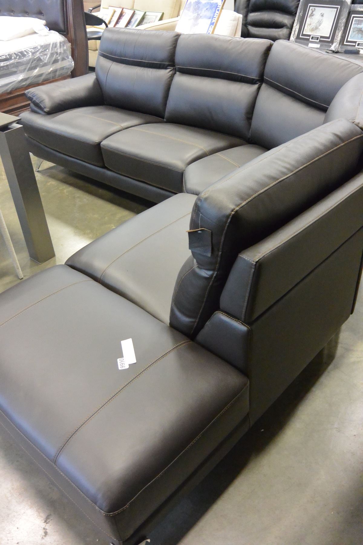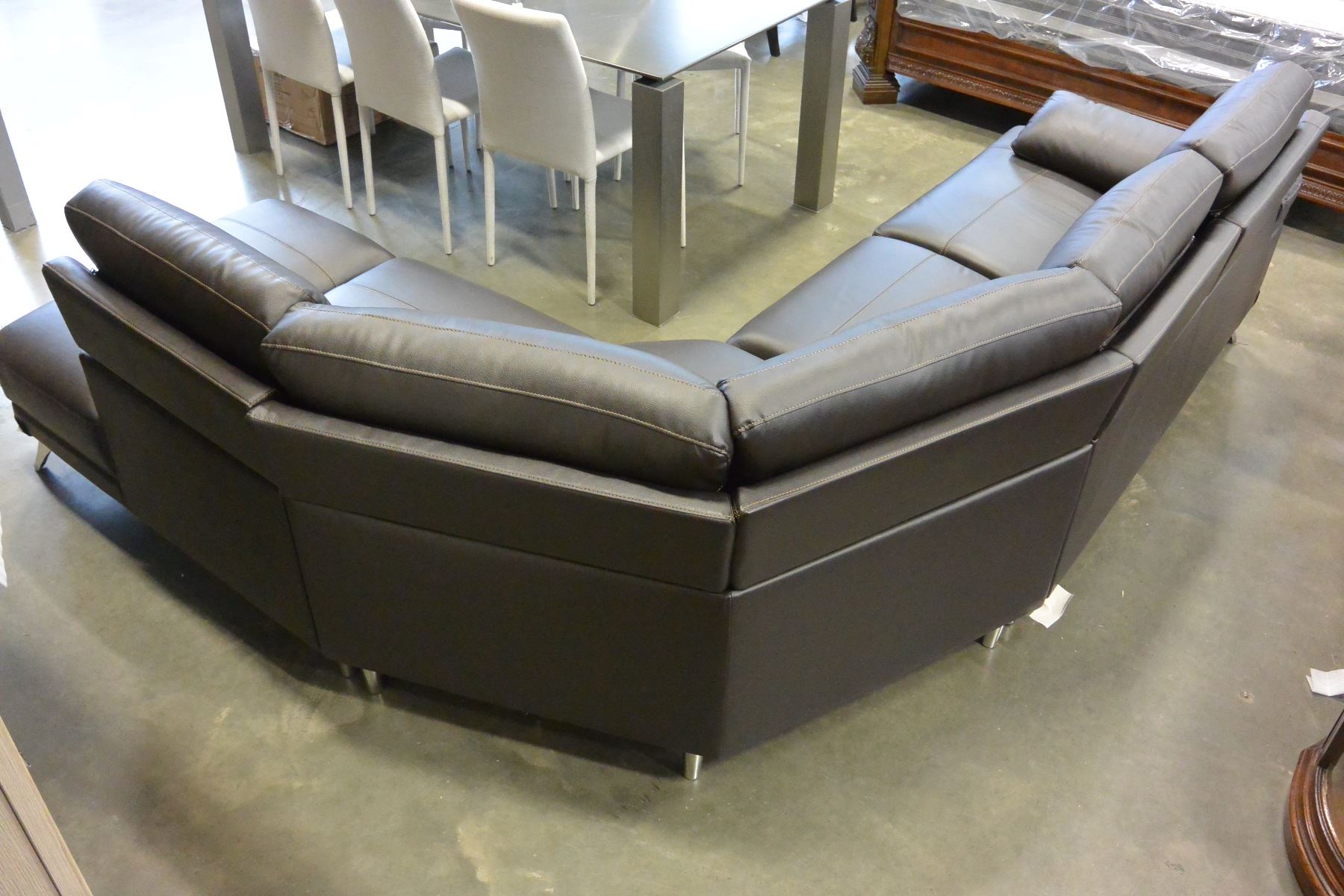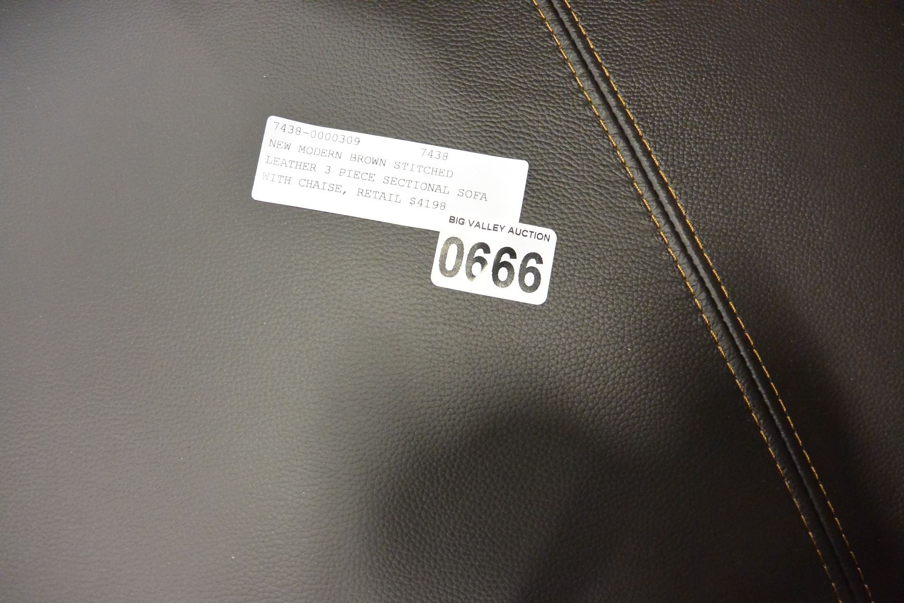NEW MODERN BROWN STITCHED LEATHER 3 PIECE SECTIONAL SOFA WITH CHAISE, RETAIL $4198