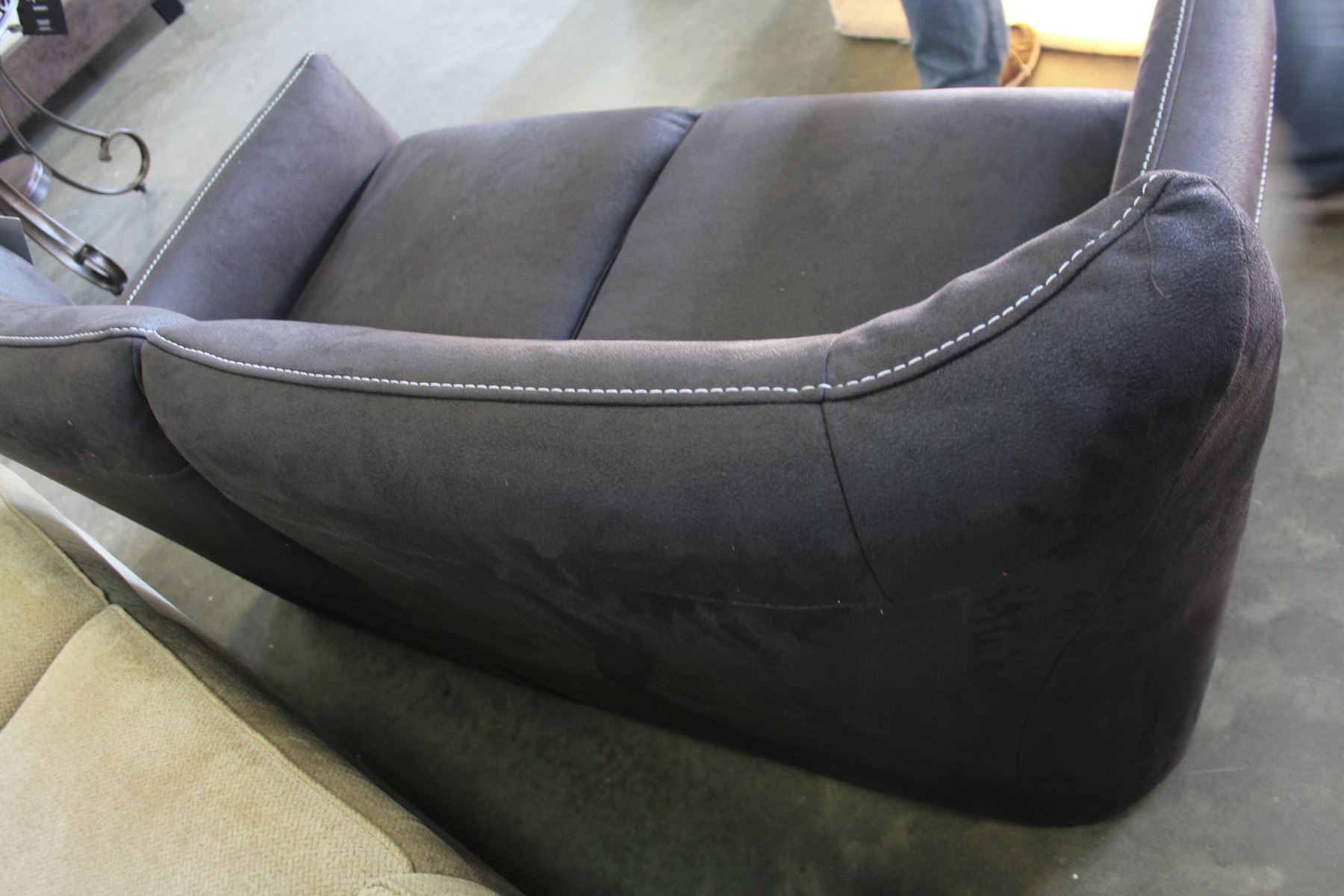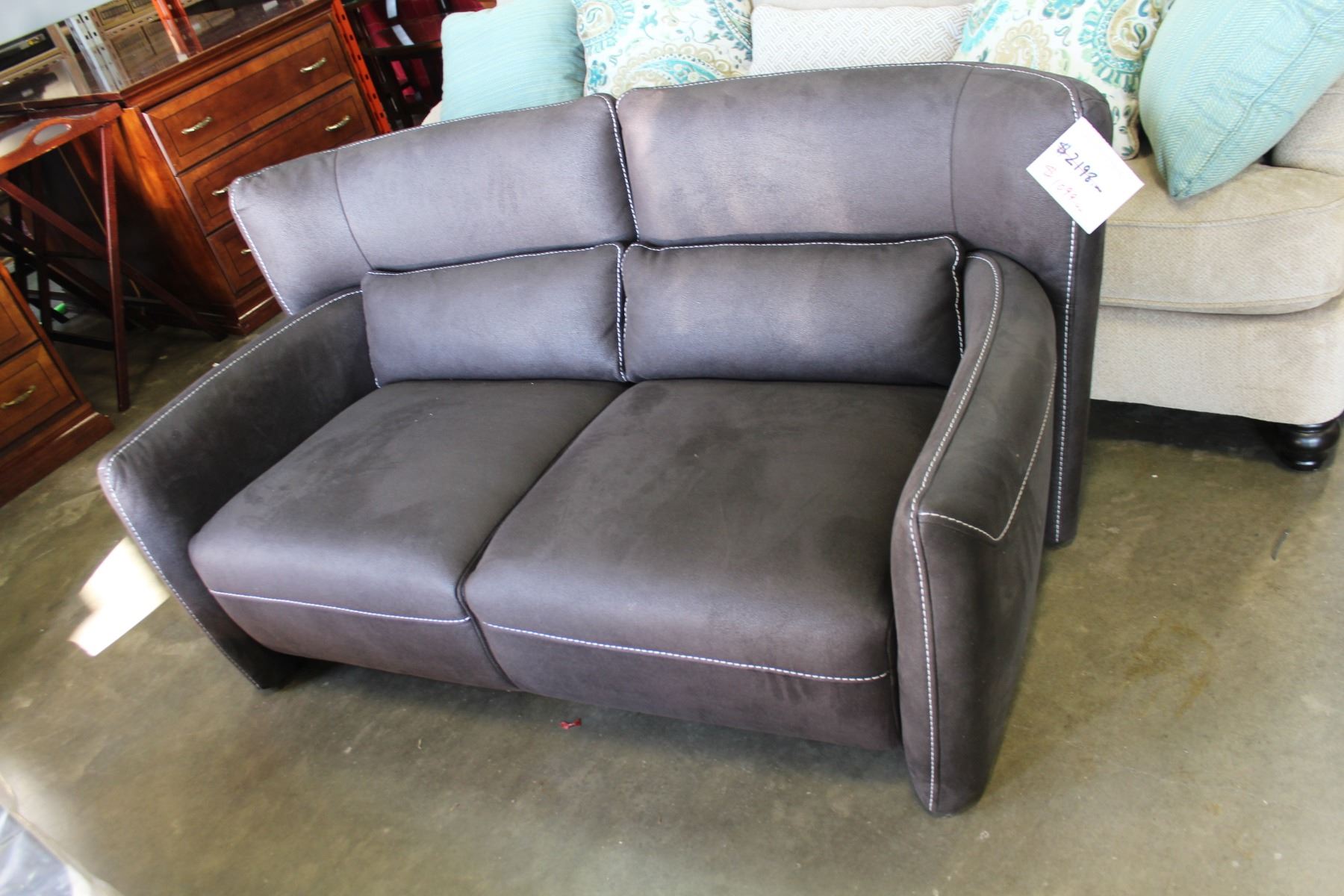NEW MODERN DARK BROWN FABRIC LOVESEAT WITH WHITE STITCHING RETAIL $1299