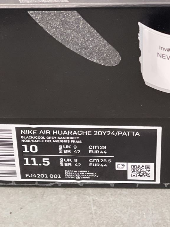 NEW NIKE AIR HUARACHE 20Y24 / PATTA SIZE US MENS 10, WOMENS 11.5