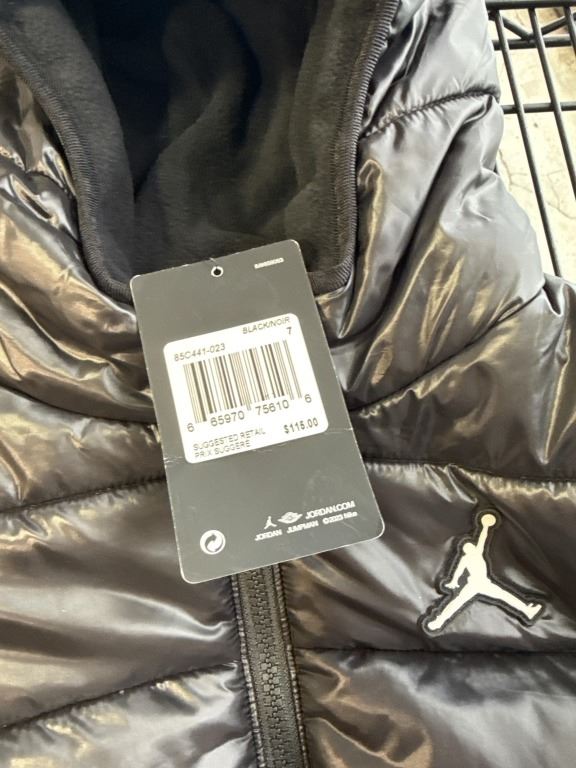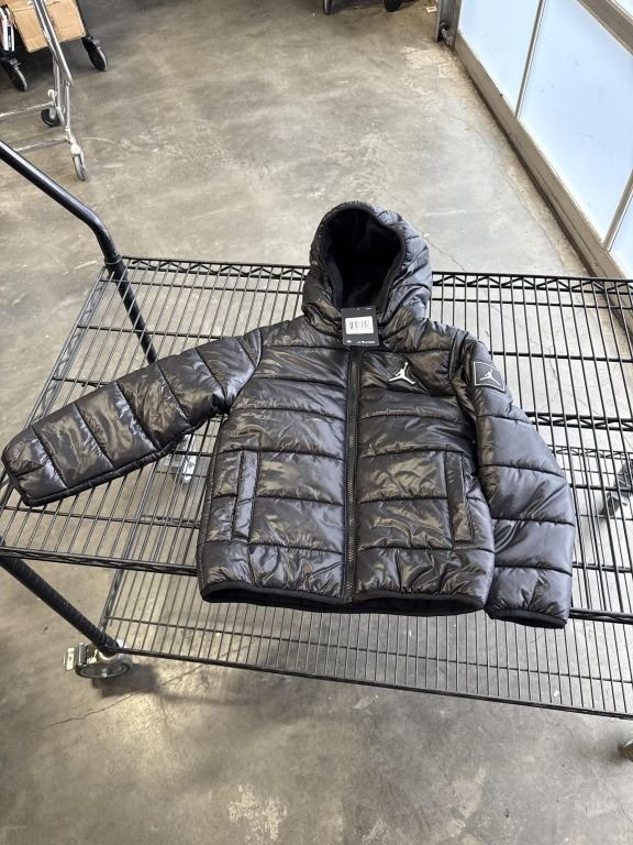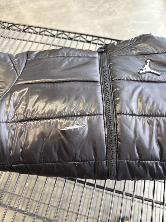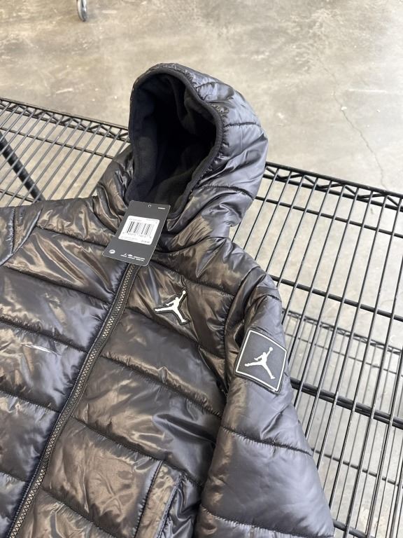 NEW NIKE JORDAN JUMPAN YOUTH 6-7YR SIZE 7 BLACK PUFFY JACKET, RETAIL $115, HAS TEAR IN FRONT, SEE PICS